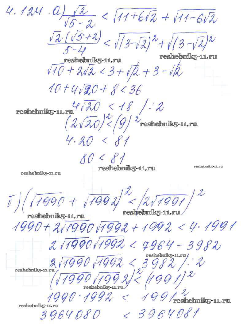 Готовая домашняя работа с ответами по Алгебре за 8, 9 класс Галицкий, Гольдман, Звавич Сборник задач Просвещение 2019 ФГОС - Параграф 4. Квадратные корни 4.124