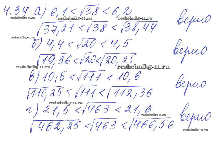 Готовая домашняя работа с ответами по Алгебре за 8, 9 класс Галицкий, Гольдман, Звавич Сборник задач Просвещение 2019 ФГОС - Параграф 4. Квадратные корни 4.34