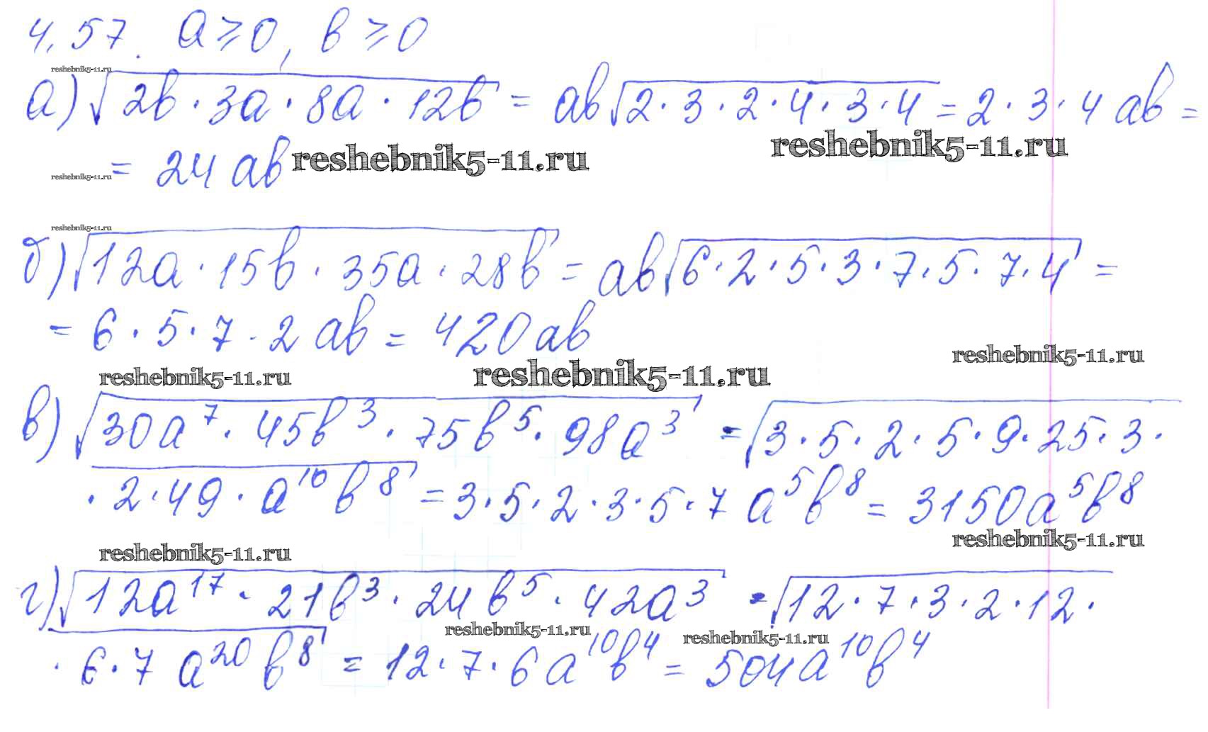 Готовая домашняя работа с ответами по Алгебре за 8, 9 класс Галицкий, Гольдман, Звавич Сборник задач Просвещение 2019 ФГОС - Параграф 4. Квадратные корни 4.57