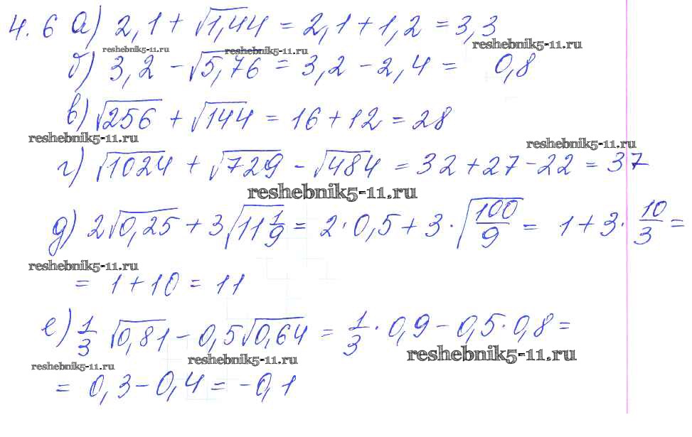 Готовая домашняя работа с ответами по Алгебре за 8, 9 класс Галицкий, Гольдман, Звавич Сборник задач Просвещение 2019 ФГОС - Параграф 4. Квадратные корни 4.6