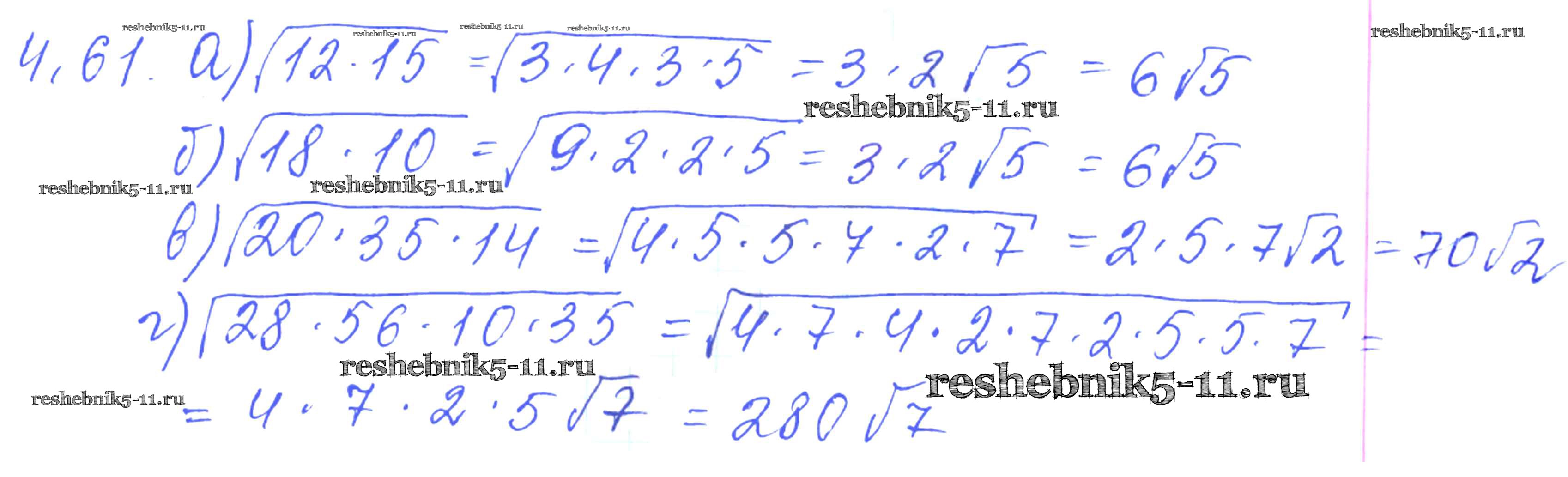 Готовая домашняя работа с ответами по Алгебре за 8, 9 класс Галицкий, Гольдман, Звавич Сборник задач Просвещение 2019 ФГОС - Параграф 4. Квадратные корни 4.61