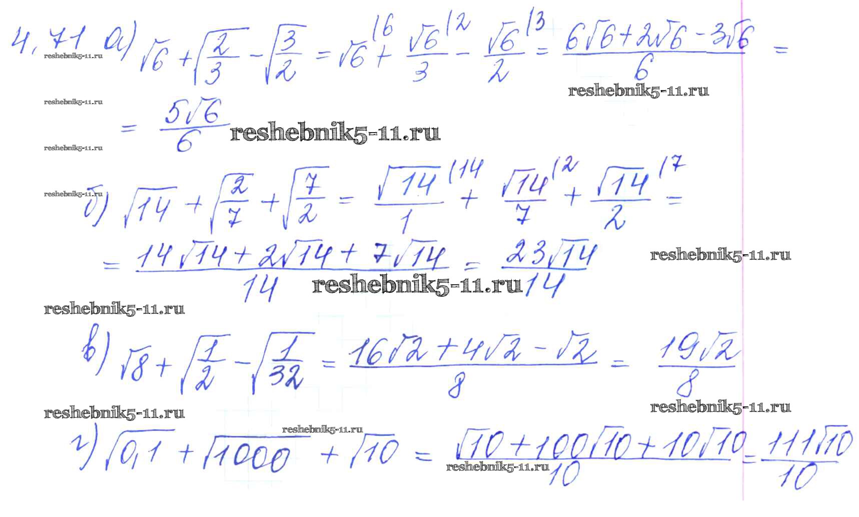 Готовая домашняя работа с ответами по Алгебре за 8, 9 класс Галицкий, Гольдман, Звавич Сборник задач Просвещение 2019 ФГОС - Параграф 4. Квадратные корни 4.71