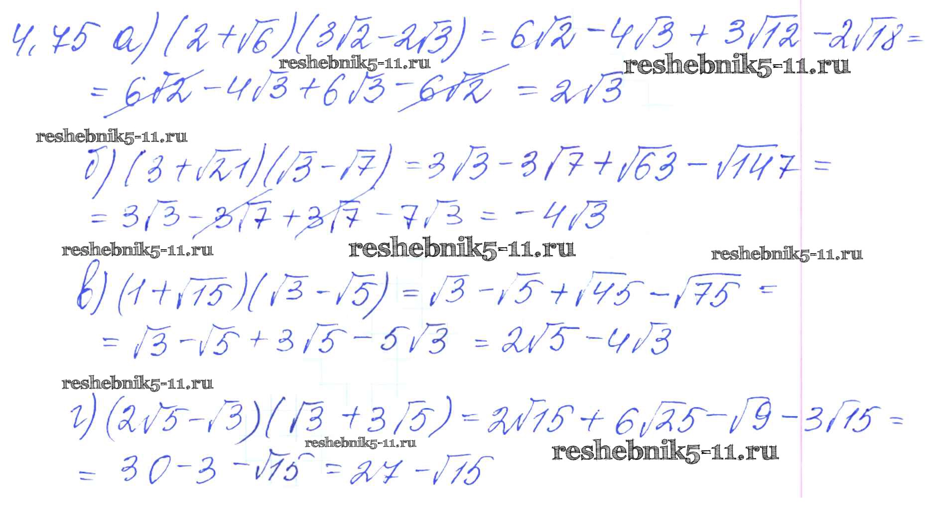 Готовая домашняя работа с ответами по Алгебре за 8, 9 класс Галицкий, Гольдман, Звавич Сборник задач Просвещение 2019 ФГОС - Параграф 4. Квадратные корни 4.75