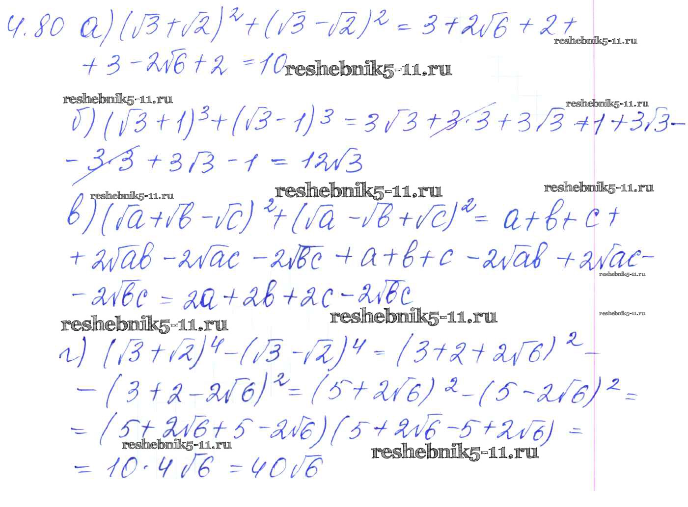 Готовая домашняя работа с ответами по Алгебре за 8, 9 класс Галицкий, Гольдман, Звавич Сборник задач Просвещение 2019 ФГОС - Параграф 4. Квадратные корни 4.80