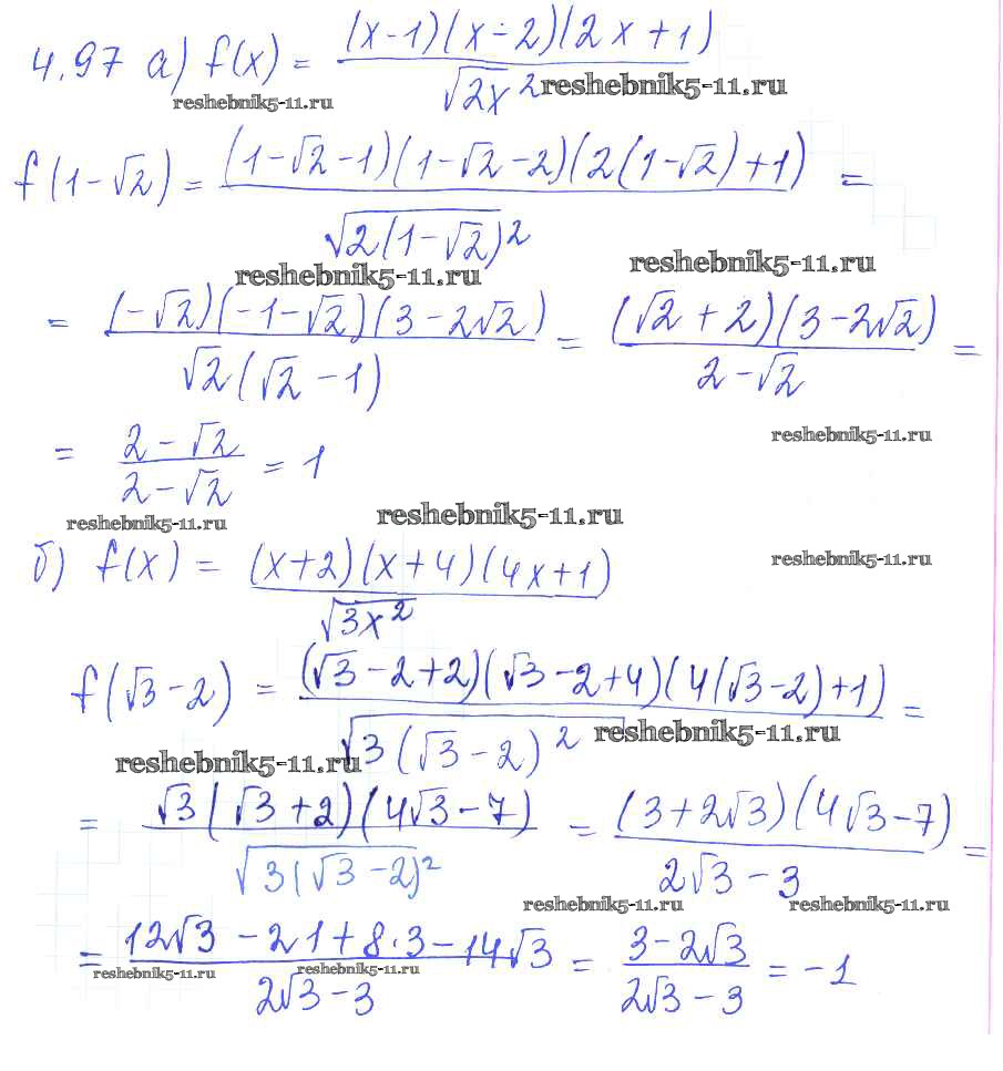 Готовая домашняя работа с ответами по Алгебре за 8, 9 класс Галицкий, Гольдман, Звавич Сборник задач Просвещение 2019 ФГОС - Параграф 4. Квадратные корни 4.97