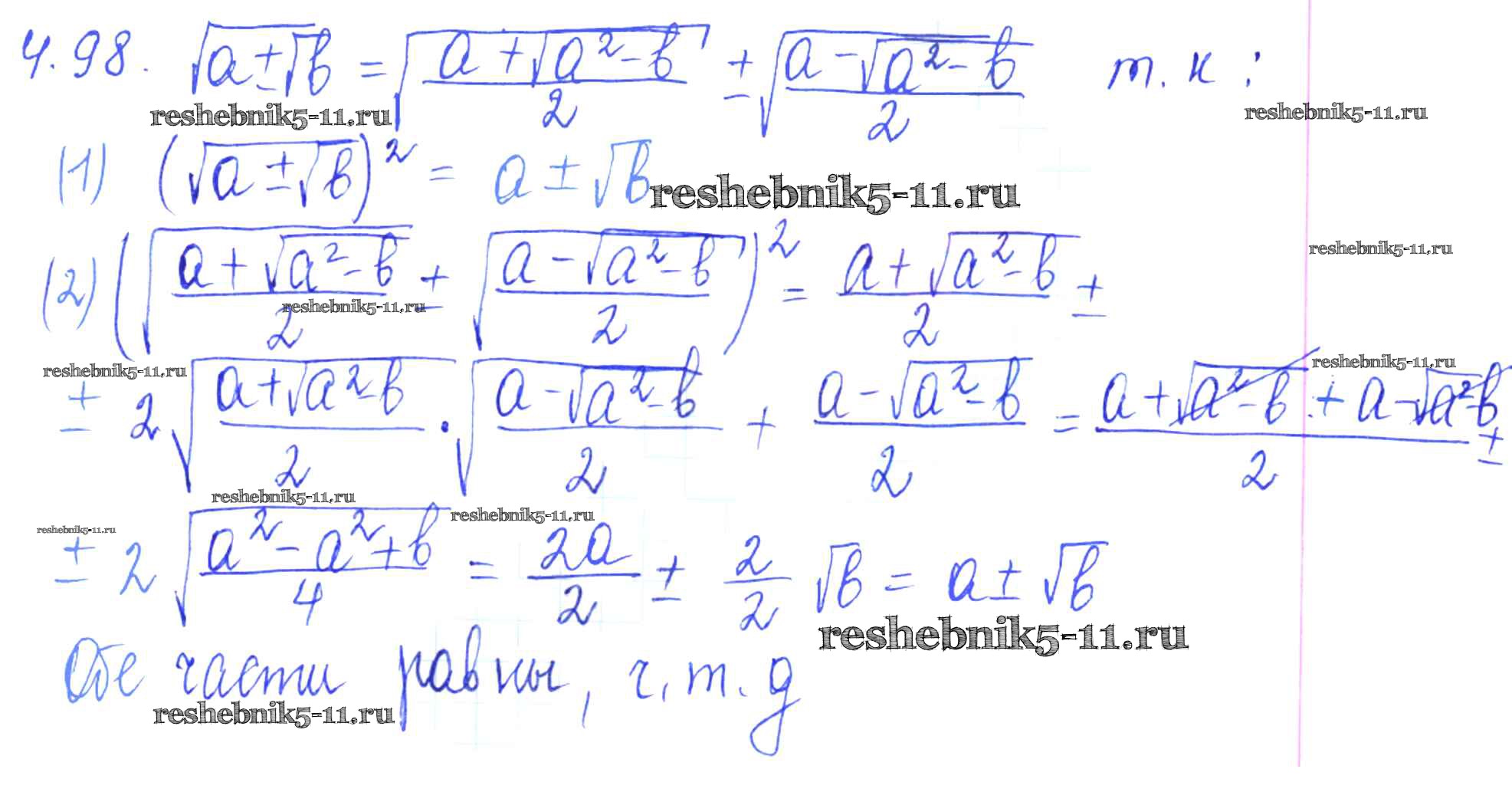 Готовая домашняя работа с ответами по Алгебре за 8, 9 класс Галицкий, Гольдман, Звавич Сборник задач Просвещение 2019 ФГОС - Параграф 4. Квадратные корни 4.98