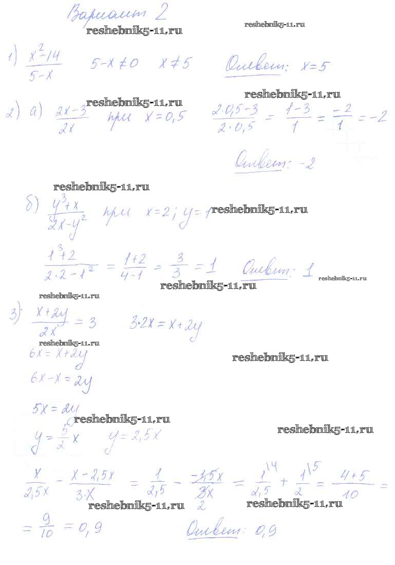 Готовая домашняя работа с ответами по Алгебре за 8 класс Попов Контрольные и самостоятельные работы УМК Экзамен 2016 ФГОС - СР-1. Варианты 2
