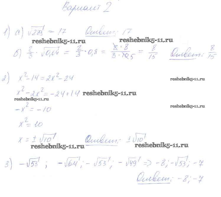 Готовая домашняя работа с ответами по Алгебре за 8 класс Попов Контрольные и самостоятельные работы УМК Экзамен 2016 ФГОС - СР-10. Варианты 2