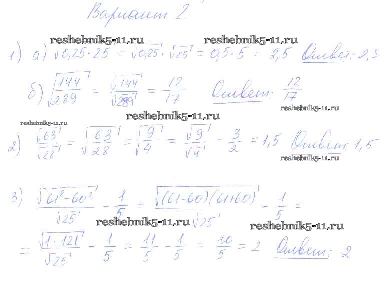 Готовая домашняя работа с ответами по Алгебре за 8 класс Попов Контрольные и самостоятельные работы УМК Экзамен 2016 ФГОС - СР-14. Варианты 2