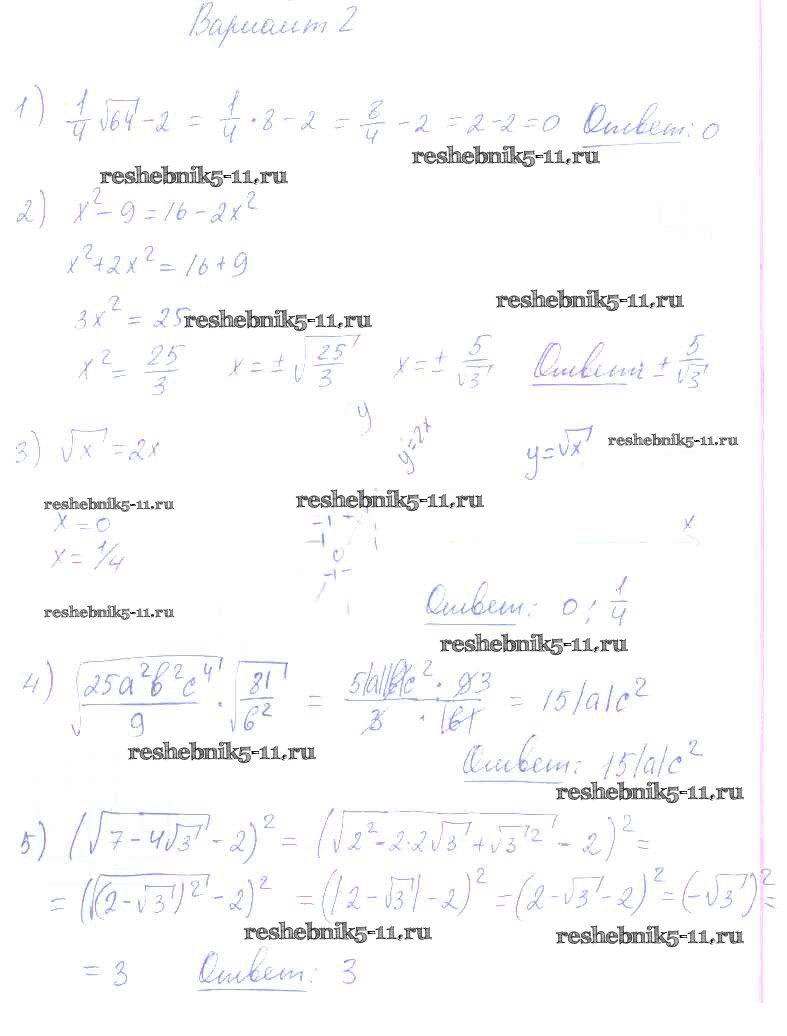 Готовая домашняя работа с ответами по Алгебре за 8 класс Попов Контрольные и самостоятельные работы УМК Экзамен 2016 ФГОС - КР-2. Варианты 2
