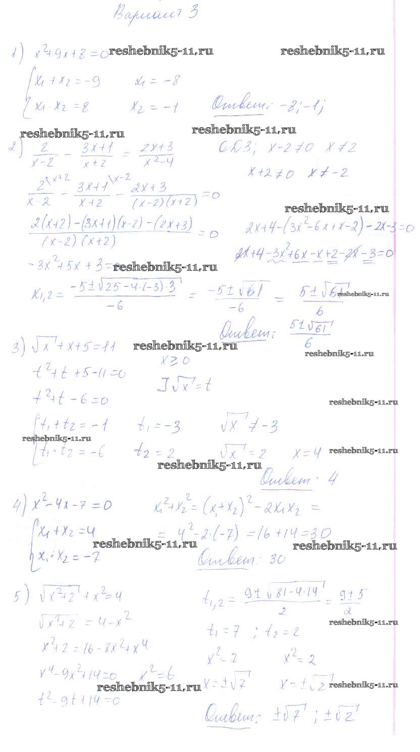 Готовая домашняя работа с ответами по Алгебре за 8 класс Попов Контрольные и самостоятельные работы УМК Экзамен 2016 ФГОС - КР-4. Варианты 3