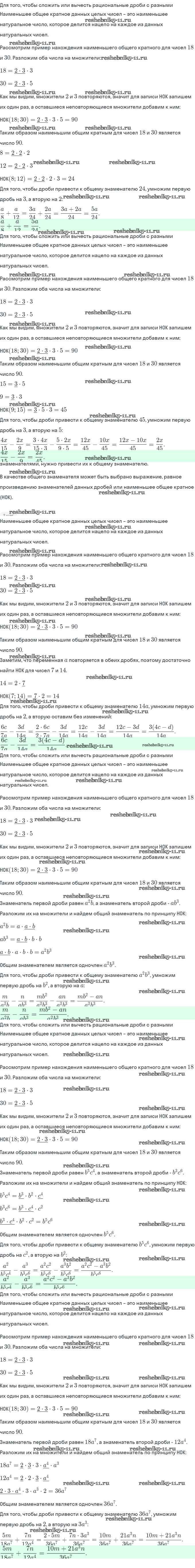 §4. Сложение и вычитание рациональных дробей с разными знаменателями