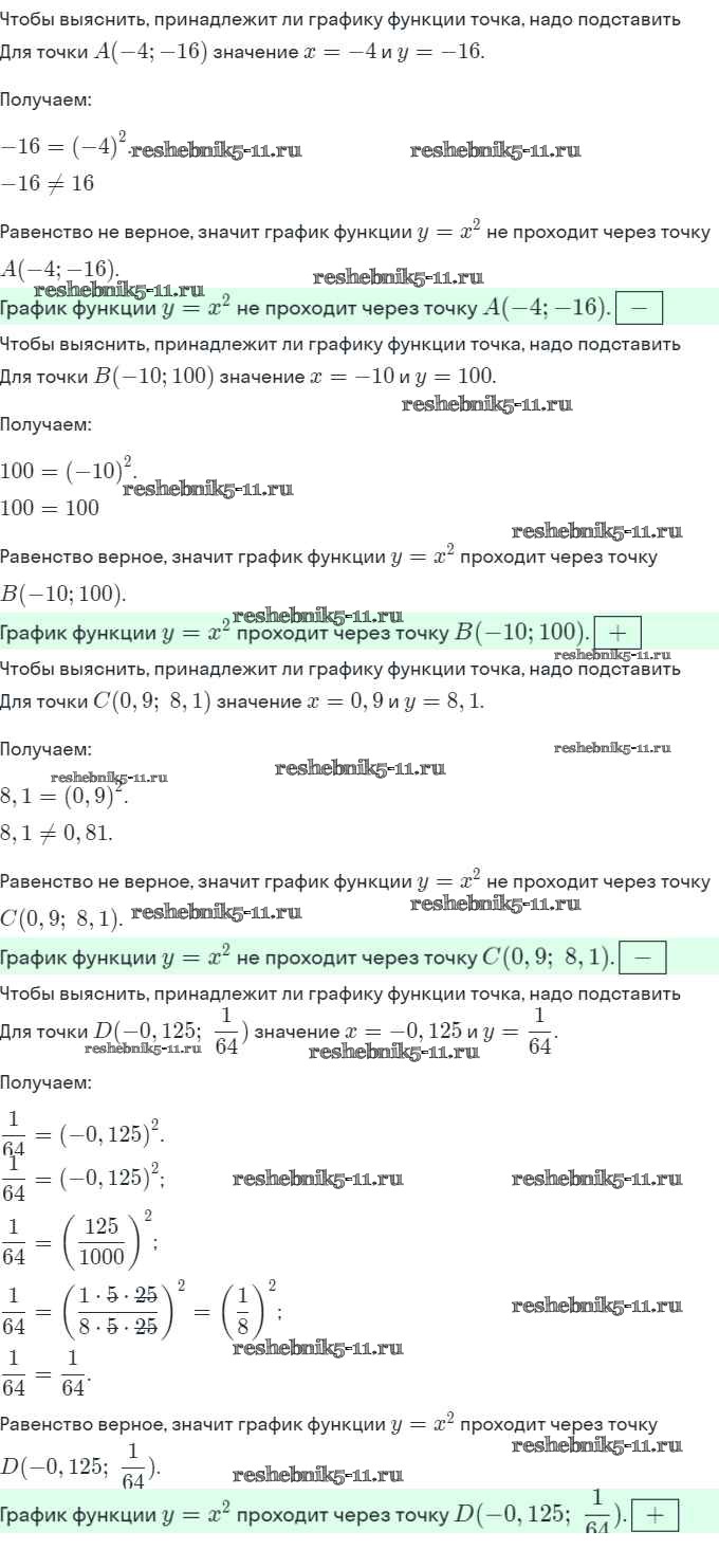 Готовая домашняя работа с ответами по Алгебре за 8 класс Мерзляк, Полонский, Якир Рабочая тетрадь Алгоритм успеха Часть 1, 2 Вентана-граф 2019 ФГОС - §11. Функция y = x^2 и её график 4