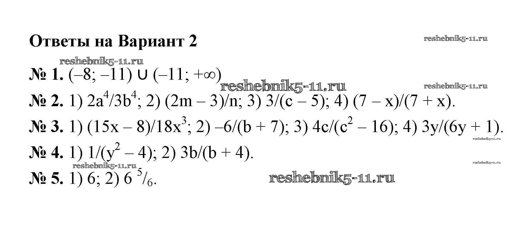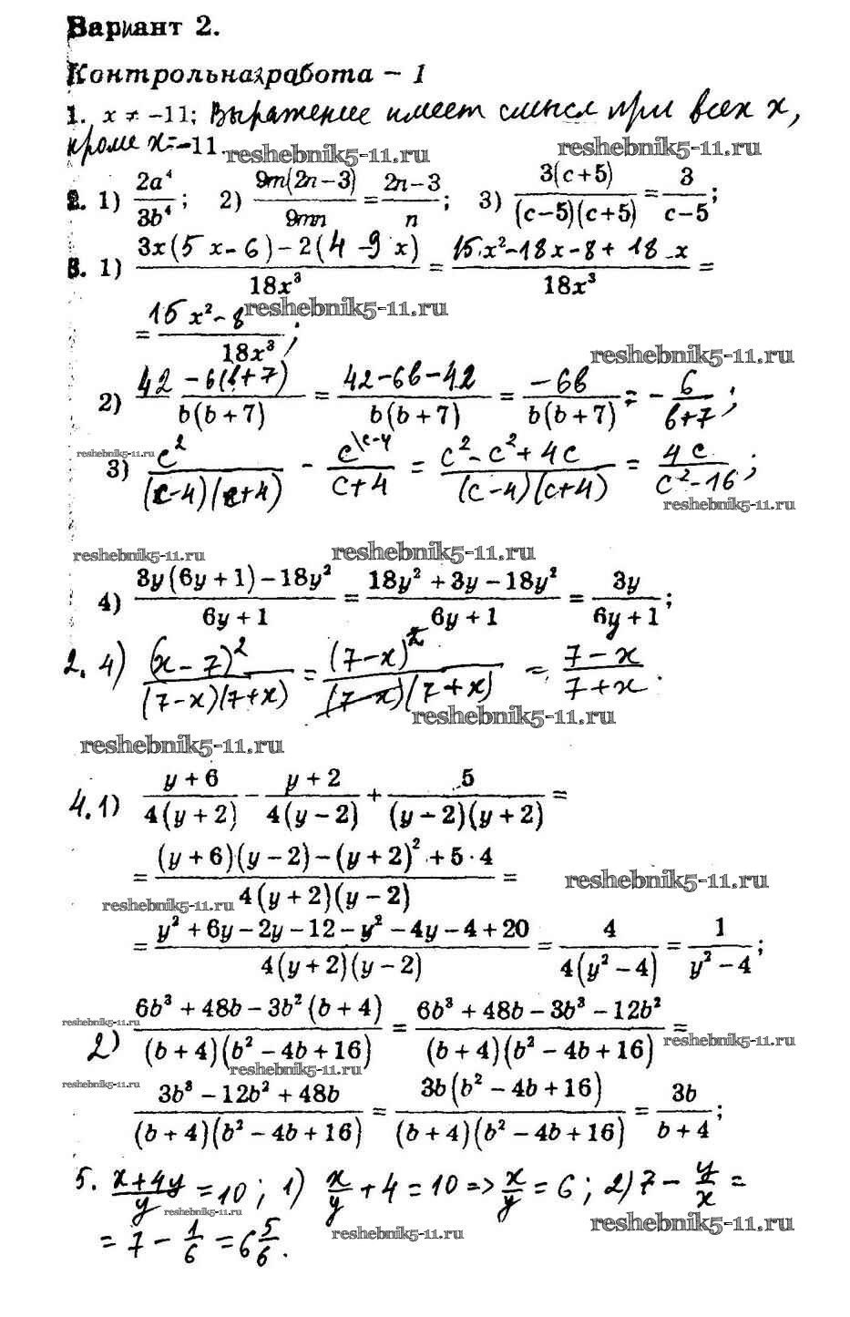 Готовая домашняя работа с ответами по Алгебре за 8 класс Мерзляк, Полонский, Рябинович, Якир Дидактические материалы Алгоритм успеха Вентана-граф 2016 ФГОС - КР-1. Основное свойство рациональной дроби. Сложение и вычитание рациональных дробей вариант 2
