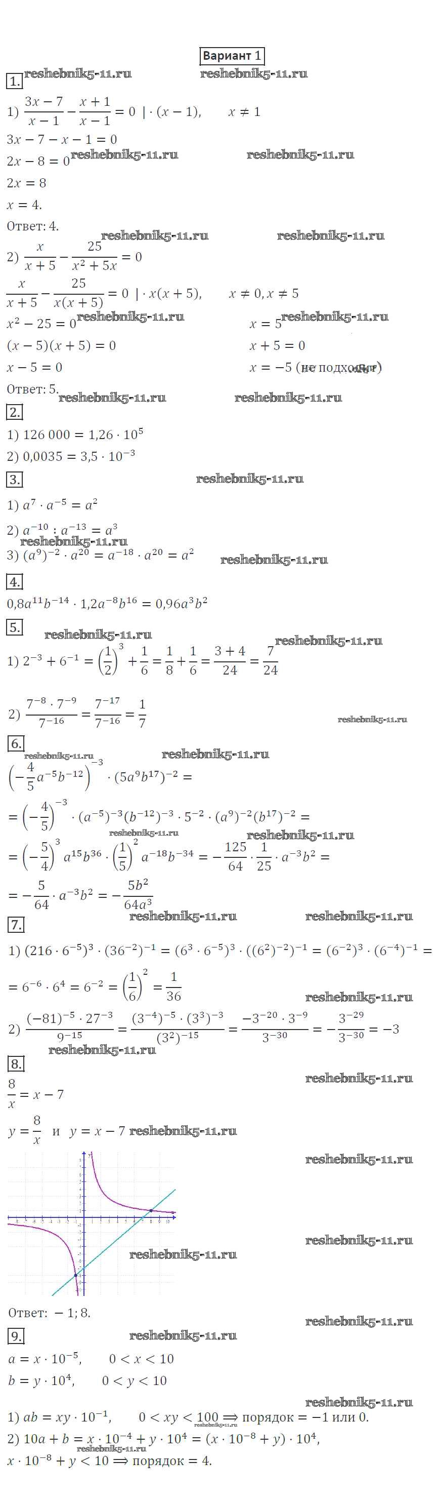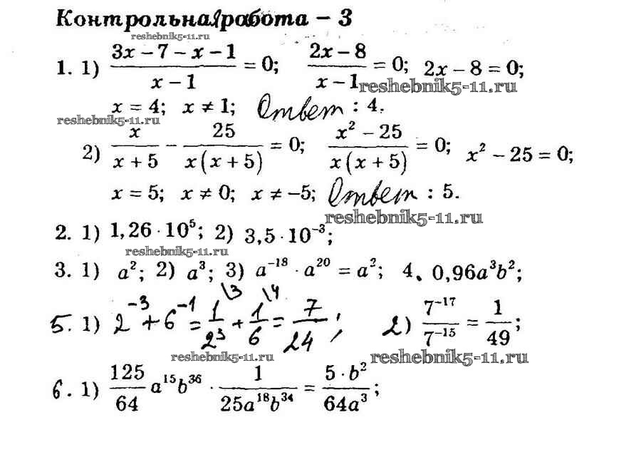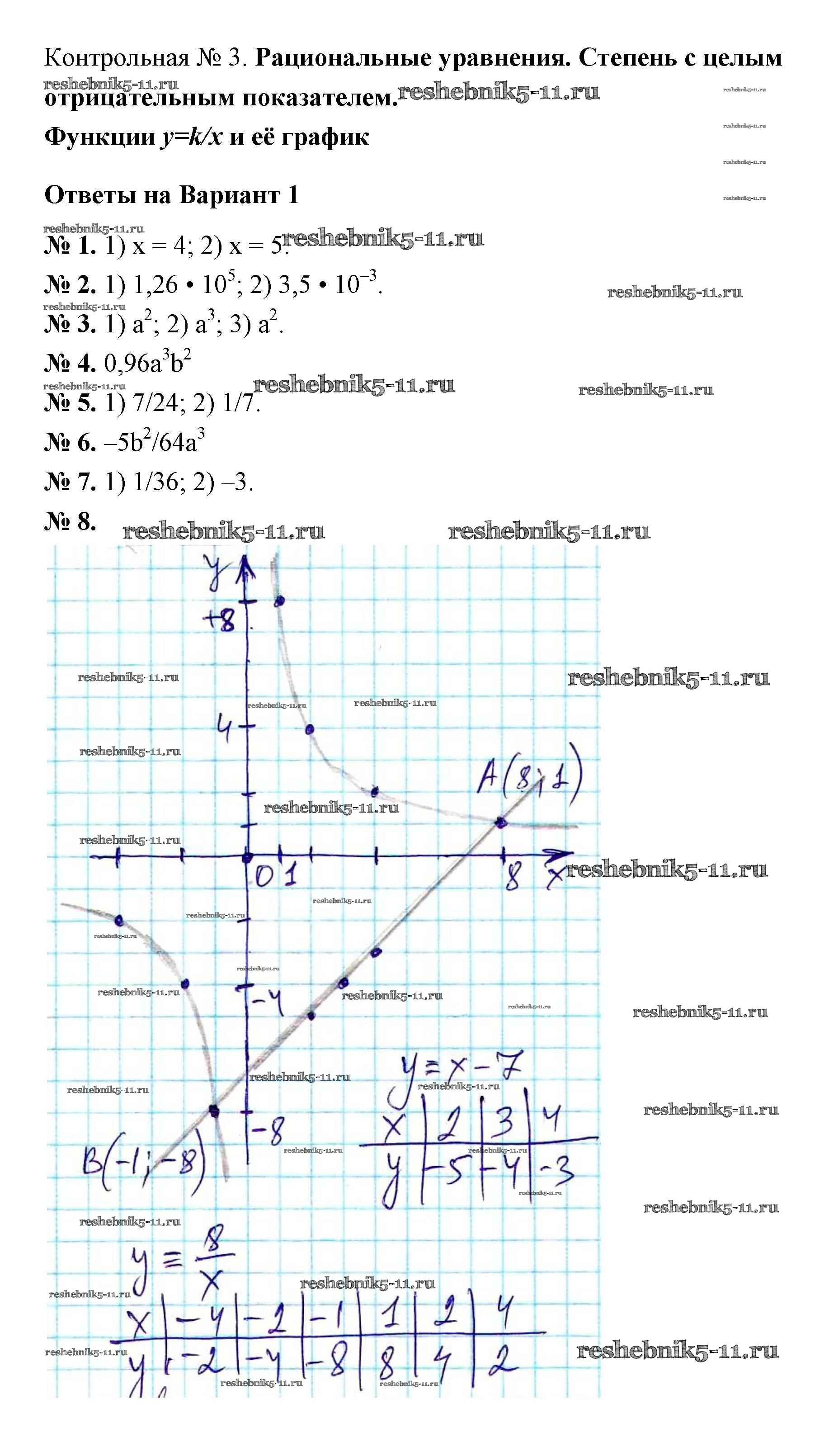 Готовая домашняя работа с ответами по Алгебре за 8 класс Мерзляк, Полонский, Рябинович, Якир Дидактические материалы Алгоритм успеха Вентана-граф 2016 ФГОС - КР-3. Рациональные уравнения. Степень с целым отрицательным показателем вариант 1