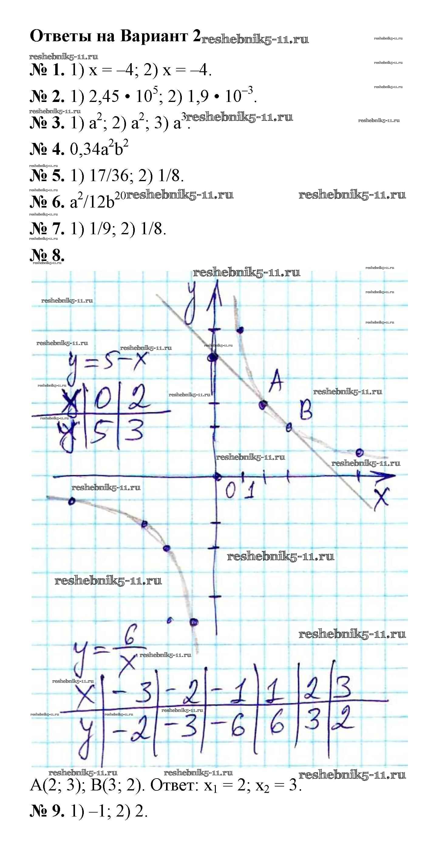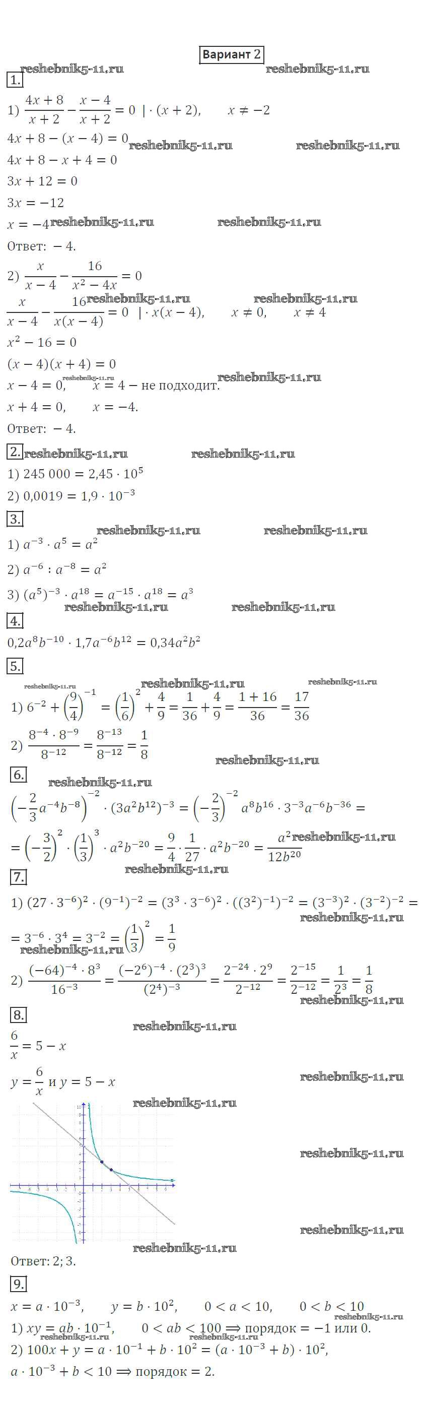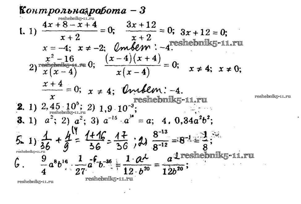 Готовая домашняя работа с ответами по Алгебре за 8 класс Мерзляк, Полонский, Рябинович, Якир Дидактические материалы Алгоритм успеха Вентана-граф 2016 ФГОС - КР-3. Рациональные уравнения. Степень с целым отрицательным показателем вариант 2