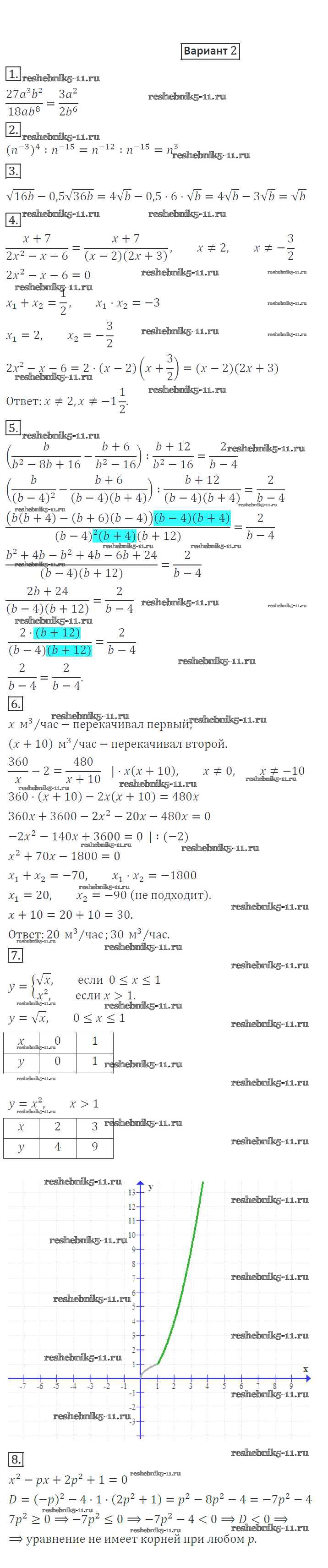 Готовая домашняя работа с ответами по Алгебре за 8 класс Мерзляк, Полонский, Рябинович, Якир Дидактические материалы Алгоритм успеха Вентана-граф 2016 ФГОС - КР-7. Обобщение и систематизация знаний учащихся вариант 2
