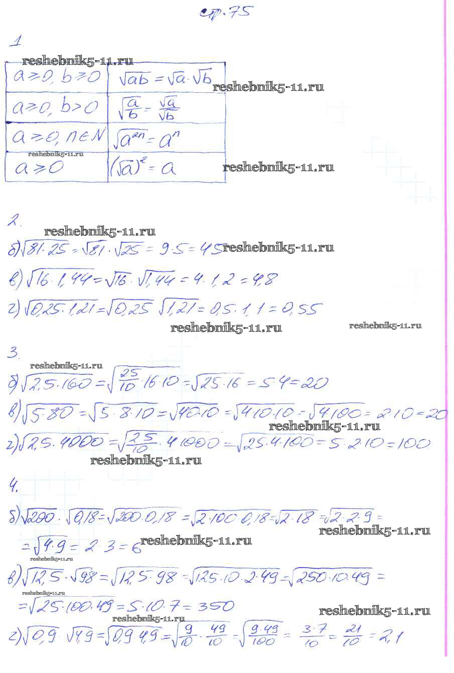 Готовая домашняя работа с ответами по Алгебре за 8 класс Ключникова, Комиссарова Рабочая тетрадь УМК Часть 1 Экзамен 2013 ФГОС - Часть 1 75