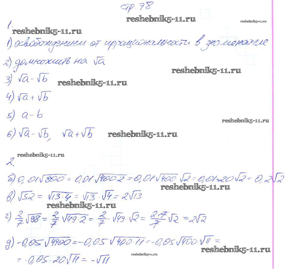 Готовая домашняя работа с ответами по Алгебре за 8 класс Ключникова, Комиссарова Рабочая тетрадь УМК Часть 1 Экзамен 2013 ФГОС - Часть 1 78