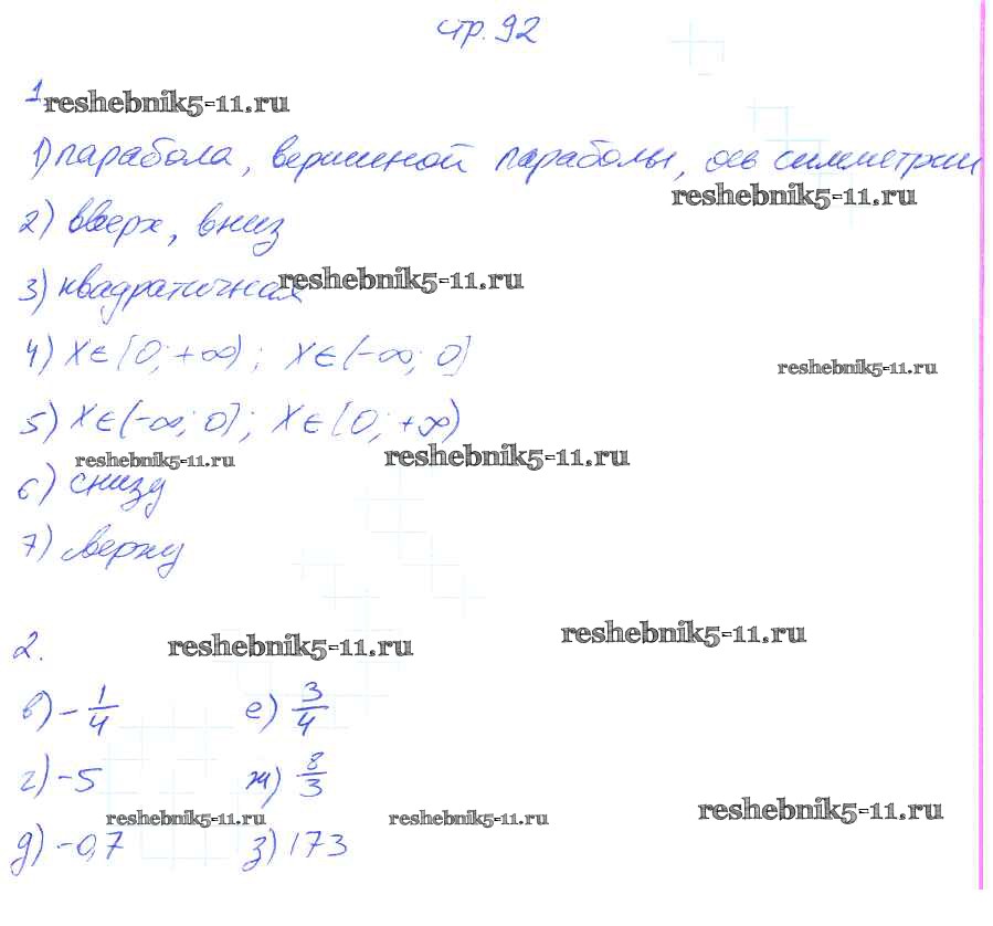 Готовая домашняя работа с ответами по Алгебре за 8 класс Ключникова, Комиссарова Рабочая тетрадь УМК Часть 1 Экзамен 2013 ФГОС - Часть 1 92