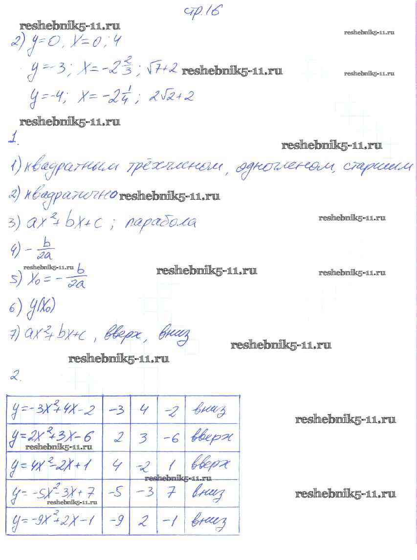 Готовая домашняя работа с ответами по Алгебре за 8 класс Ключникова, Комиссарова Рабочая тетрадь УМК Часть 1 Экзамен 2013 ФГОС - Часть 2 16