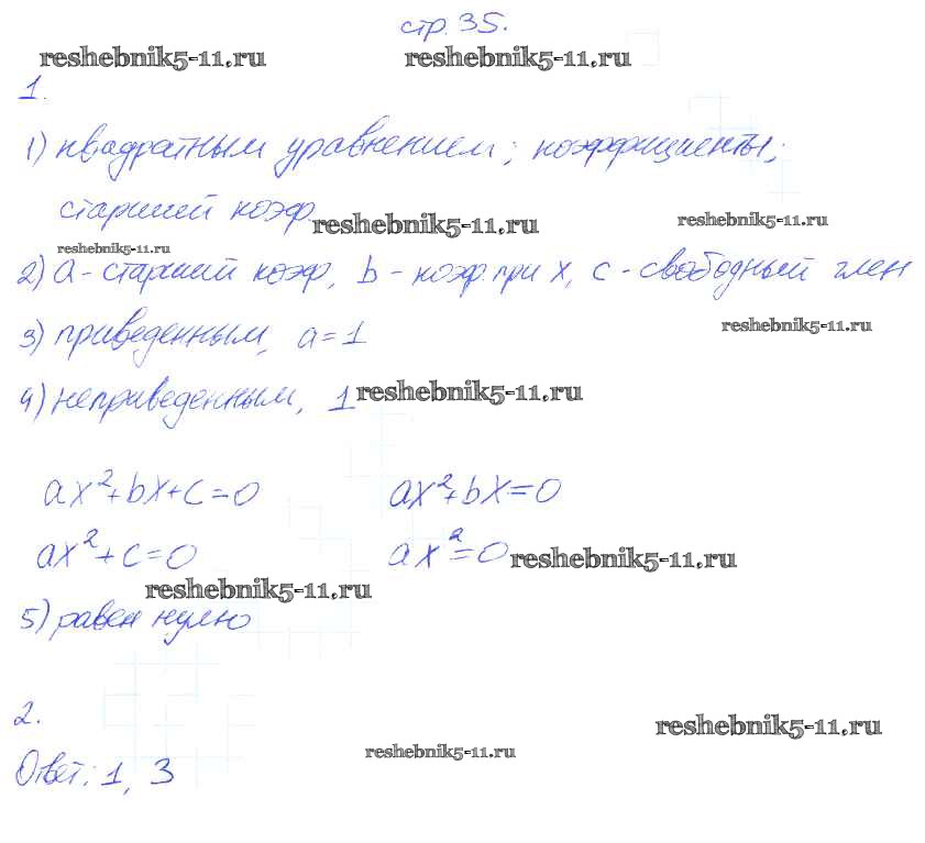 Готовая домашняя работа с ответами по Алгебре за 8 класс Ключникова, Комиссарова Рабочая тетрадь УМК Часть 1 Экзамен 2013 ФГОС - Часть 2 35