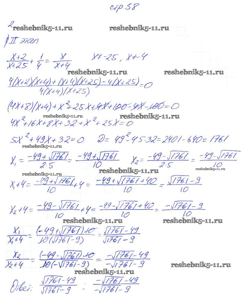 Готовая домашняя работа с ответами по Алгебре за 8 класс Ключникова, Комиссарова Рабочая тетрадь УМК Часть 1 Экзамен 2013 ФГОС - Часть 2 58