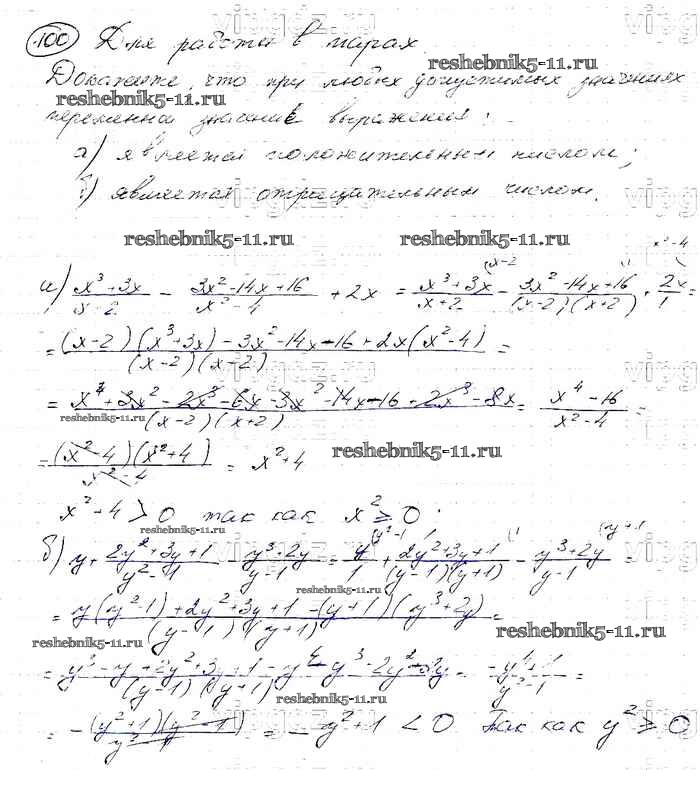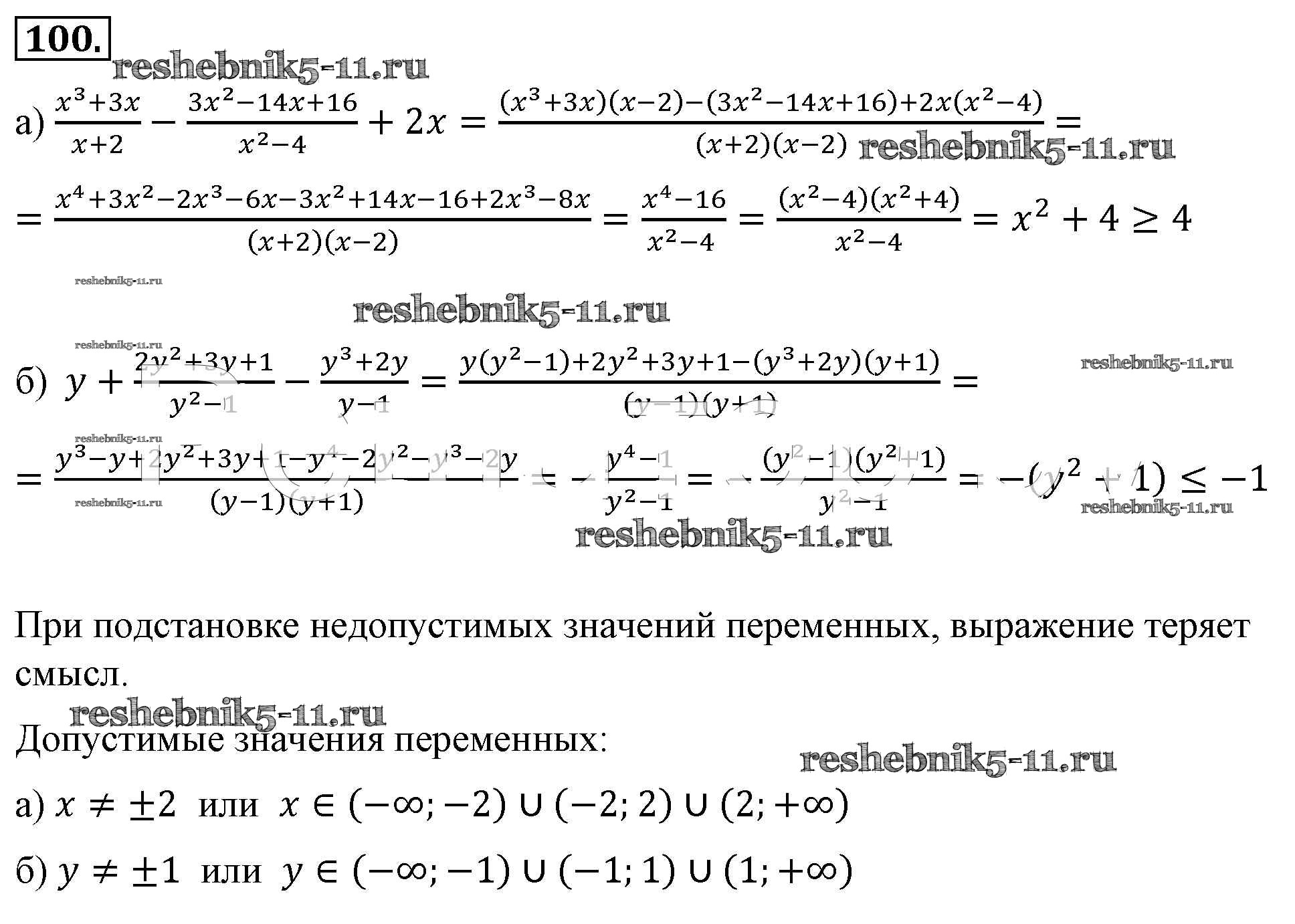 Готовая домашняя работа с ответами по Алгебре за 8 класс Макарычев, Миндюк, Нешков, Суворова Учебник Просвещение 2016 ФГОС - Упражнения 100