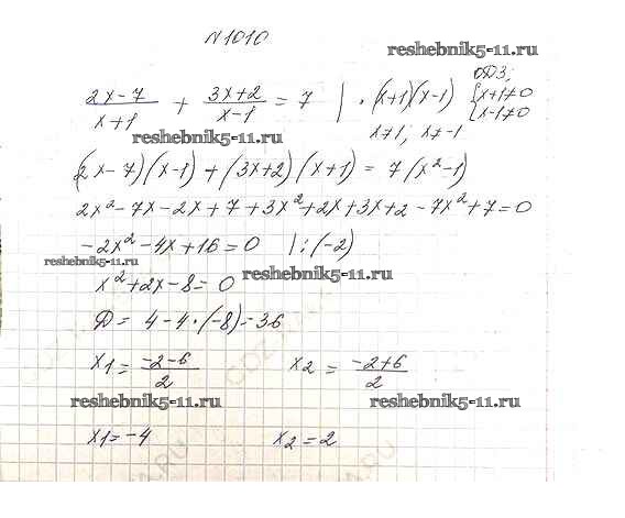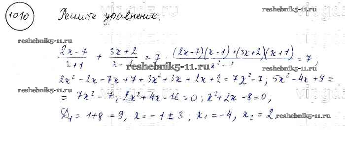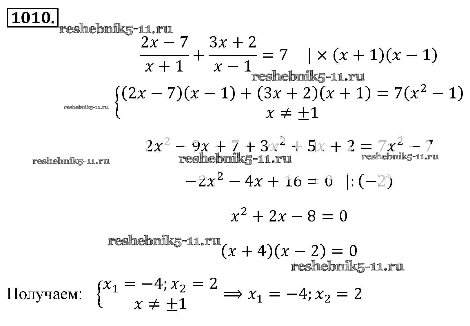 Готовая домашняя работа с ответами по Алгебре за 8 класс Макарычев, Миндюк, Нешков, Суворова Учебник Просвещение 2016 ФГОС - Упражнения 1010
