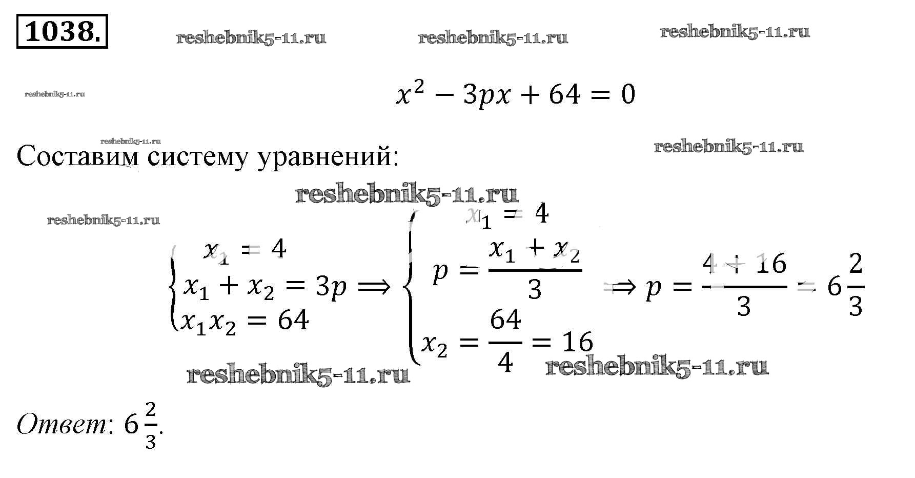 Готовая домашняя работа с ответами по Алгебре за 8 класс Макарычев, Миндюк, Нешков, Суворова Учебник Просвещение 2016 ФГОС - Упражнения 1038