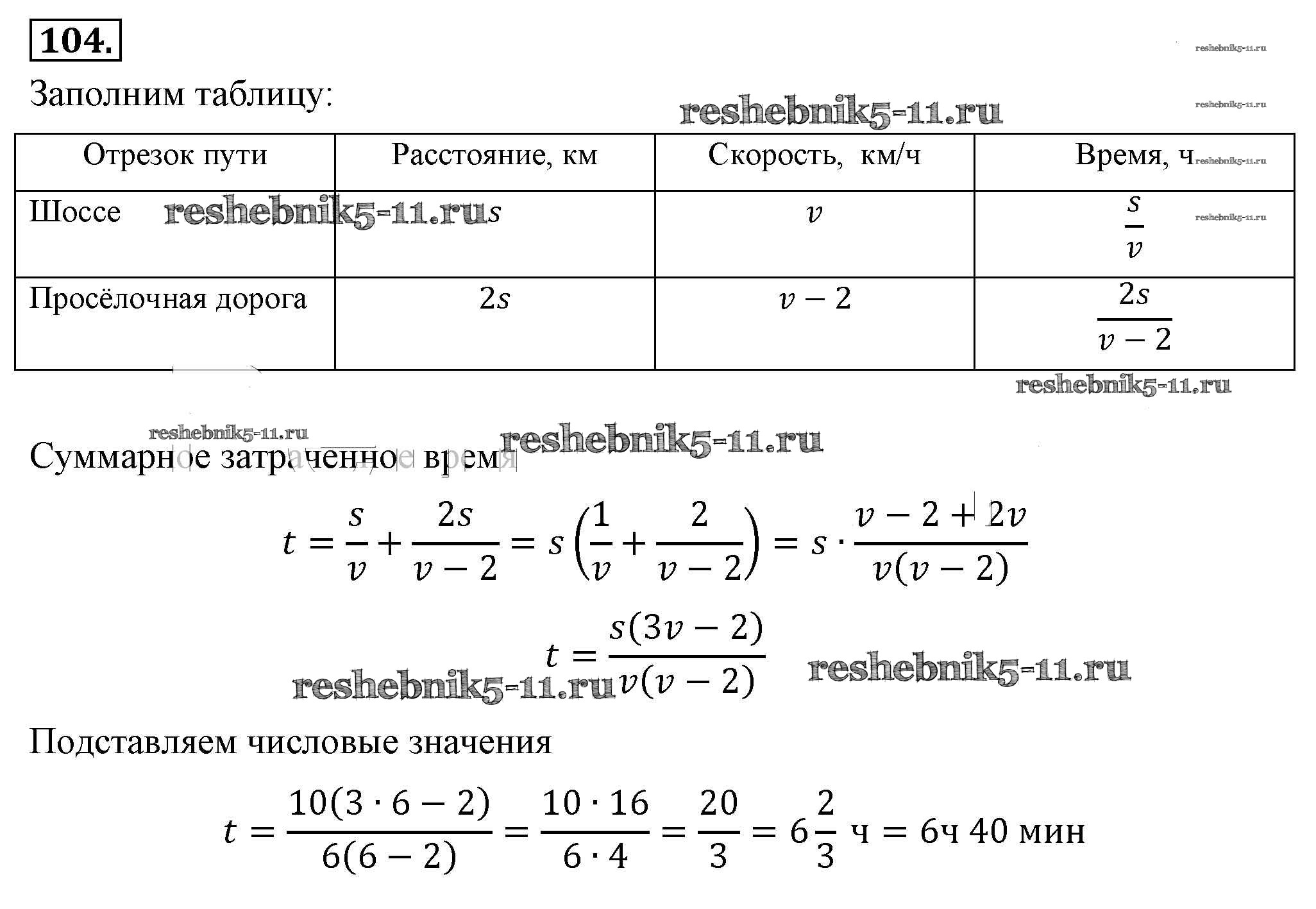 Готовая домашняя работа с ответами по Алгебре за 8 класс Макарычев, Миндюк, Нешков, Суворова Учебник Просвещение 2016 ФГОС - Упражнения 104