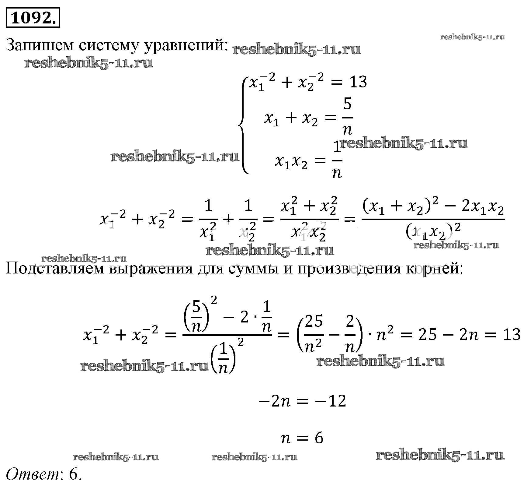 Готовая домашняя работа с ответами по Алгебре за 8 класс Макарычев, Миндюк, Нешков, Суворова Учебник Просвещение 2016 ФГОС - Упражнения 1092