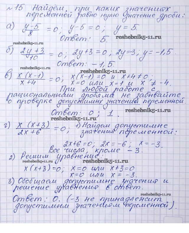 Готовая домашняя работа с ответами по Алгебре за 8 класс Макарычев, Миндюк, Нешков, Суворова Учебник Просвещение 2016 ФГОС - Упражнения 15