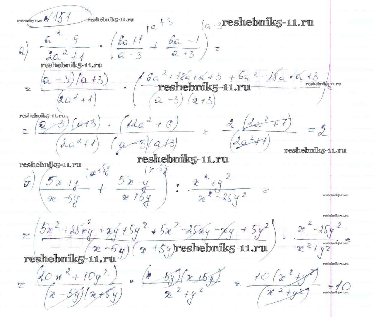 Готовая домашняя работа с ответами по Алгебре за 8 класс Макарычев, Миндюк, Нешков, Суворова Учебник Просвещение 2016 ФГОС - Упражнения 151