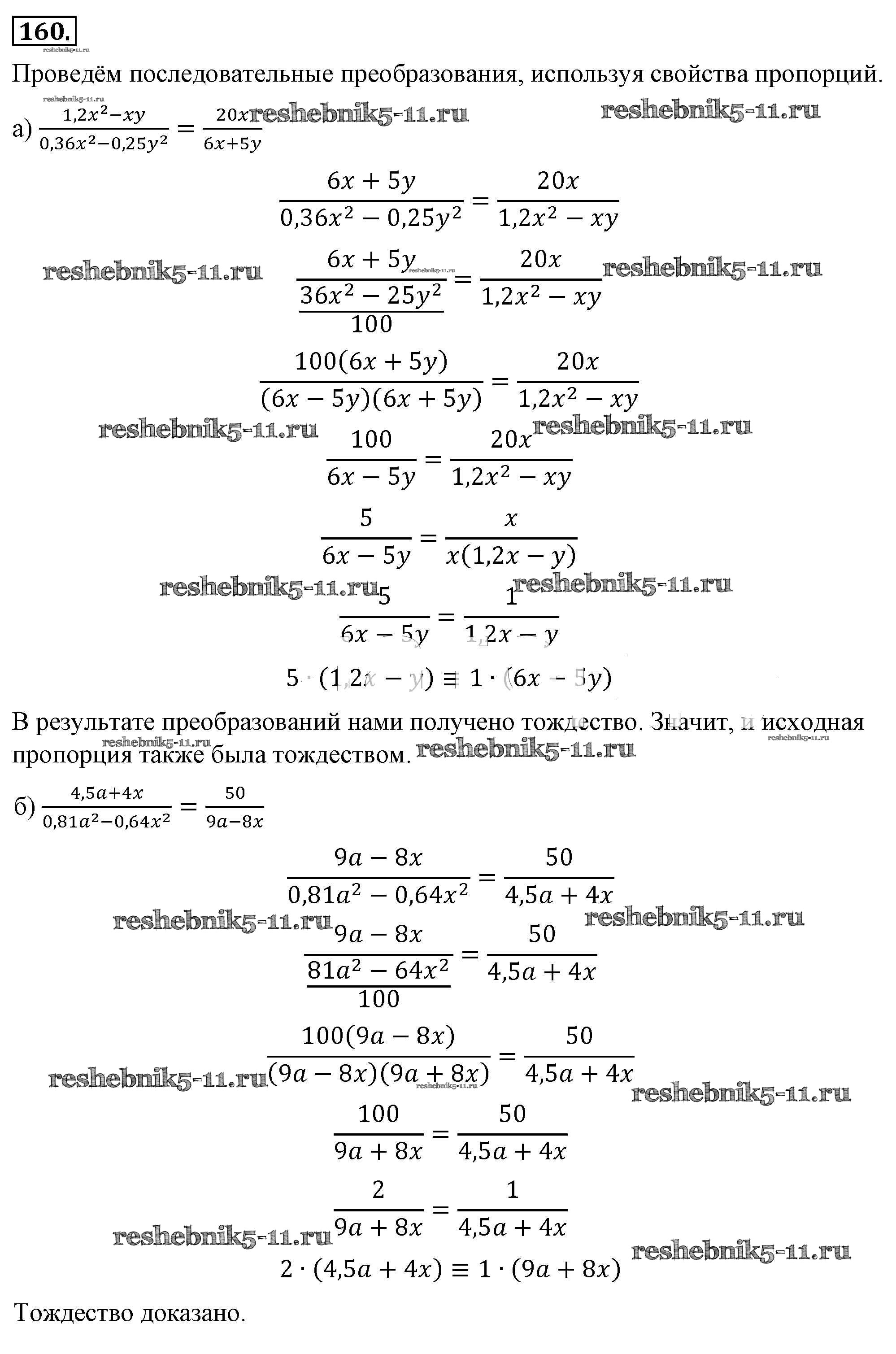 Готовая домашняя работа с ответами по Алгебре за 8 класс Макарычев, Миндюк, Нешков, Суворова Учебник Просвещение 2016 ФГОС - Упражнения 160