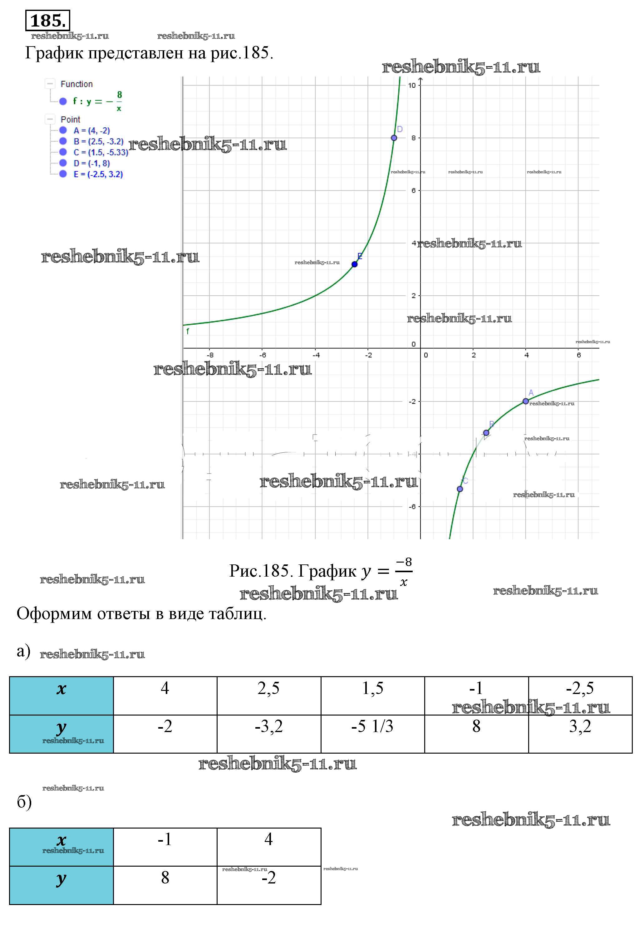 Готовая домашняя работа с ответами по Алгебре за 8 класс Макарычев, Миндюк, Нешков, Суворова Учебник Просвещение 2016 ФГОС - Упражнения 185