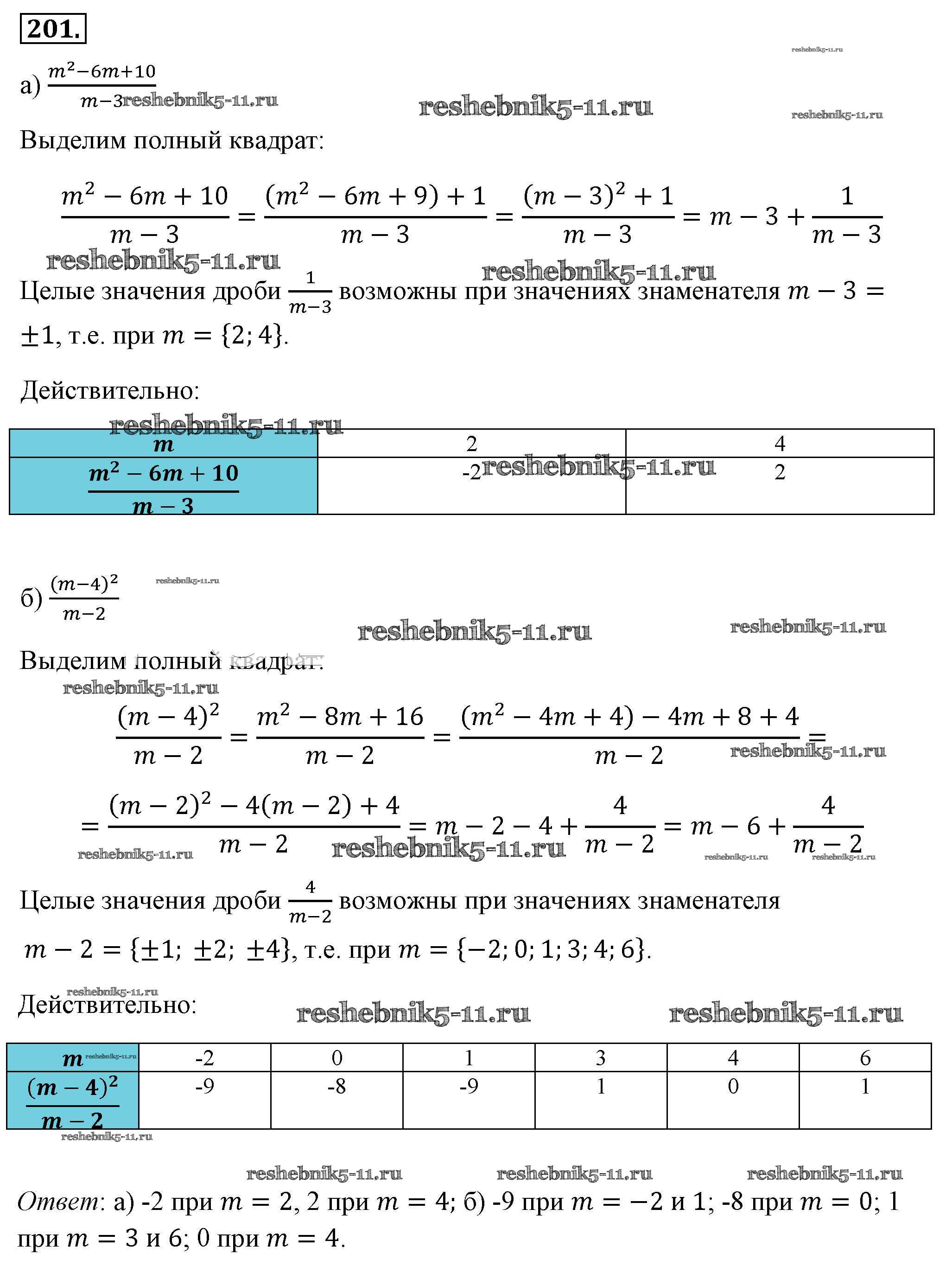 Готовая домашняя работа с ответами по Алгебре за 8 класс Макарычев, Миндюк, Нешков, Суворова Учебник Просвещение 2016 ФГОС - Упражнения 201