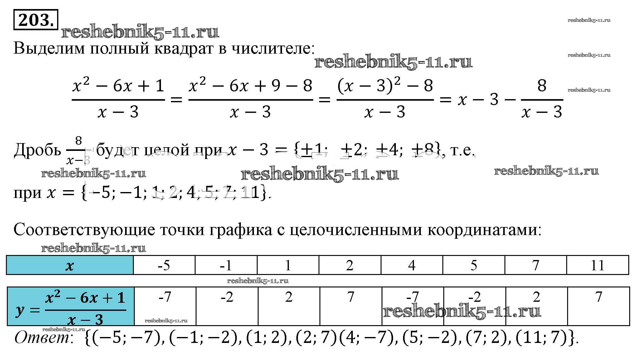 Готовая домашняя работа с ответами по Алгебре за 8 класс Макарычев, Миндюк, Нешков, Суворова Учебник Просвещение 2016 ФГОС - Упражнения 203