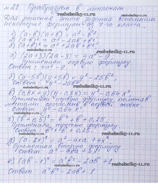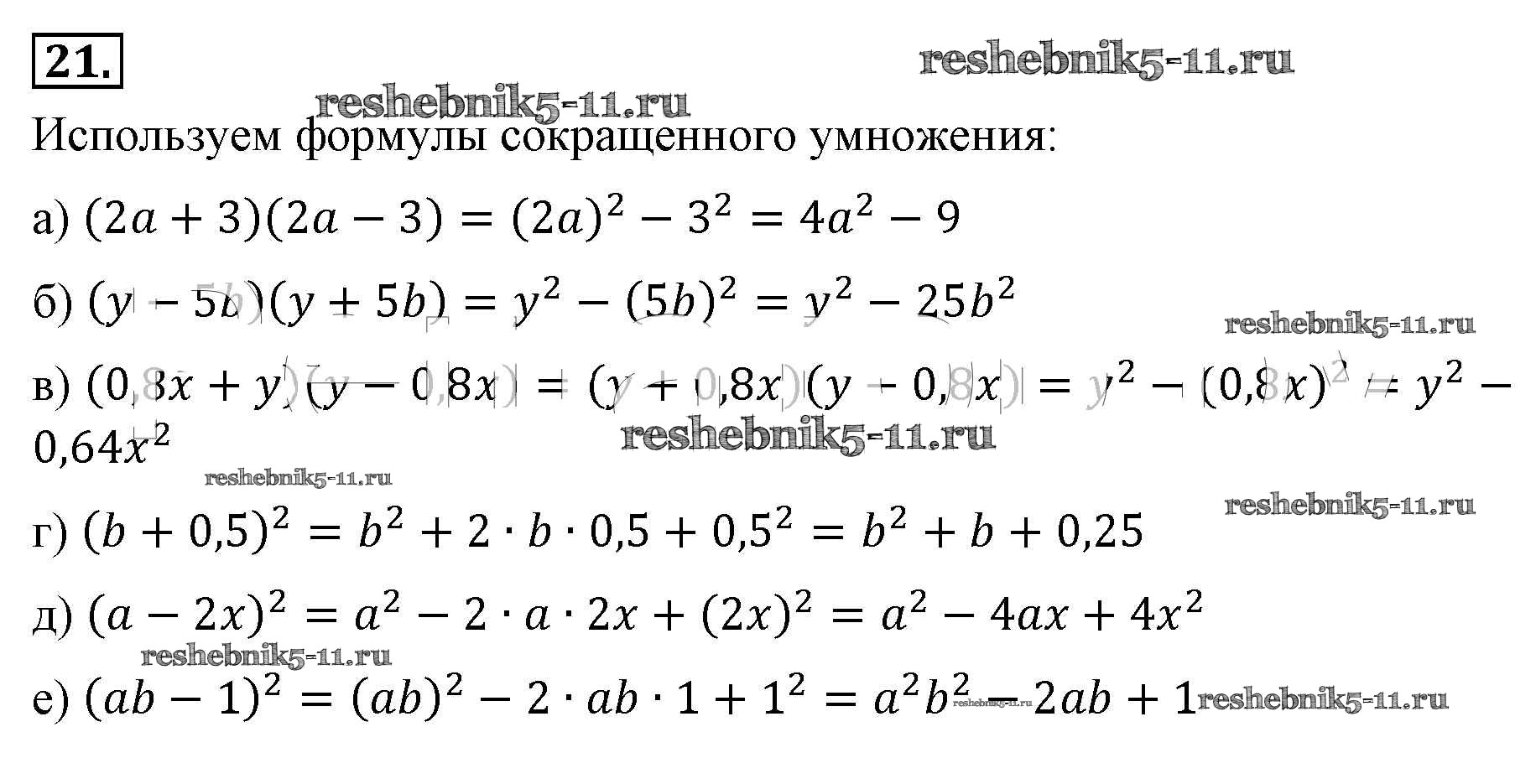 Готовая домашняя работа с ответами по Алгебре за 8 класс Макарычев, Миндюк, Нешков, Суворова Учебник Просвещение 2016 ФГОС - Упражнения 21