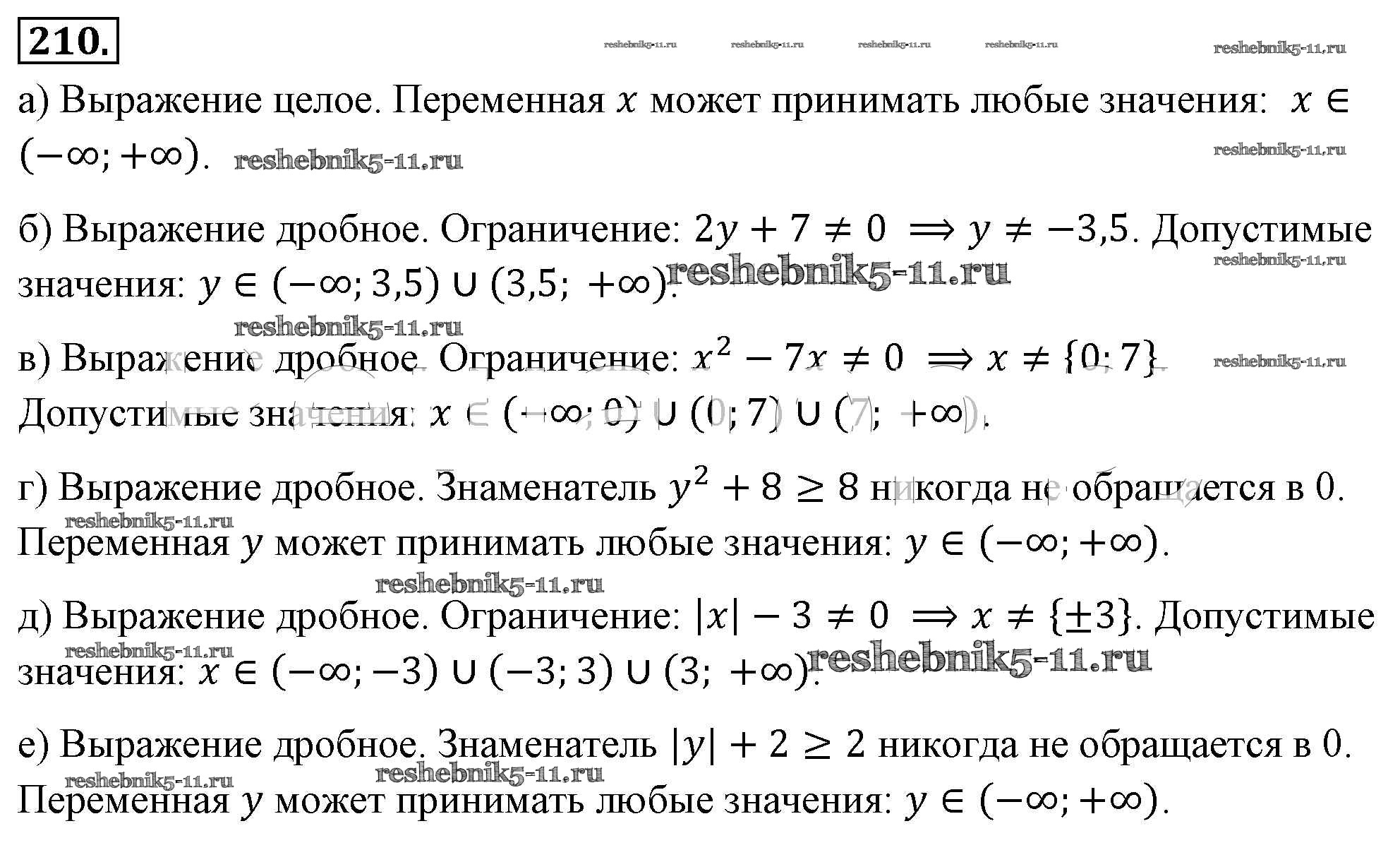 Готовая домашняя работа с ответами по Алгебре за 8 класс Макарычев, Миндюк, Нешков, Суворова Учебник Просвещение 2016 ФГОС - Упражнения 210