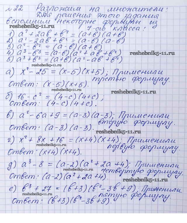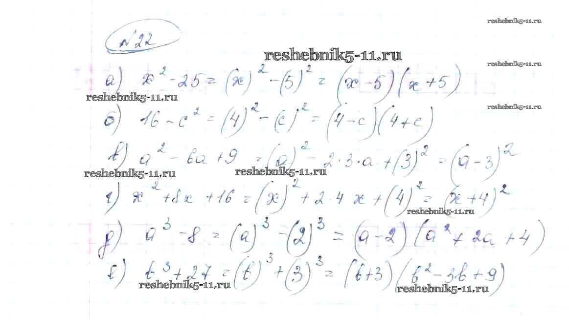 Готовая домашняя работа с ответами по Алгебре за 8 класс Макарычев, Миндюк, Нешков, Суворова Учебник Просвещение 2016 ФГОС - Упражнения 22