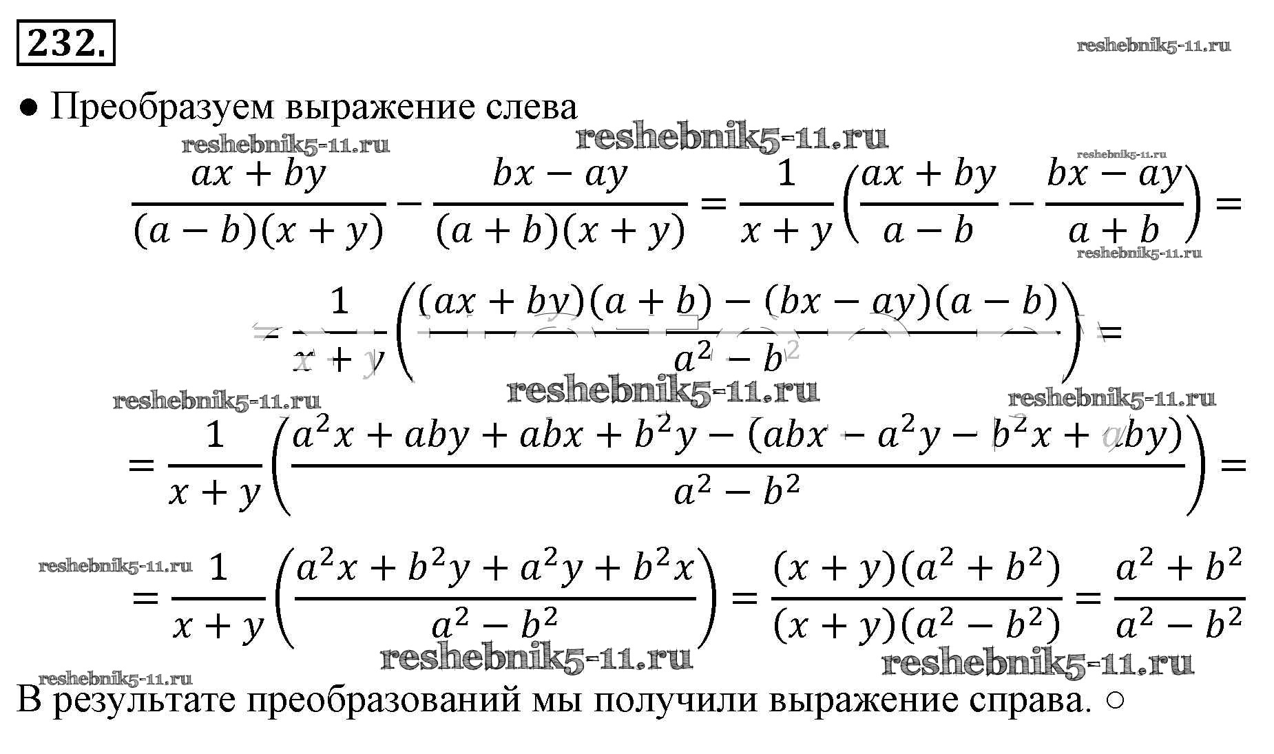 Готовая домашняя работа с ответами по Алгебре за 8 класс Макарычев, Миндюк, Нешков, Суворова Учебник Просвещение 2016 ФГОС - Упражнения 232