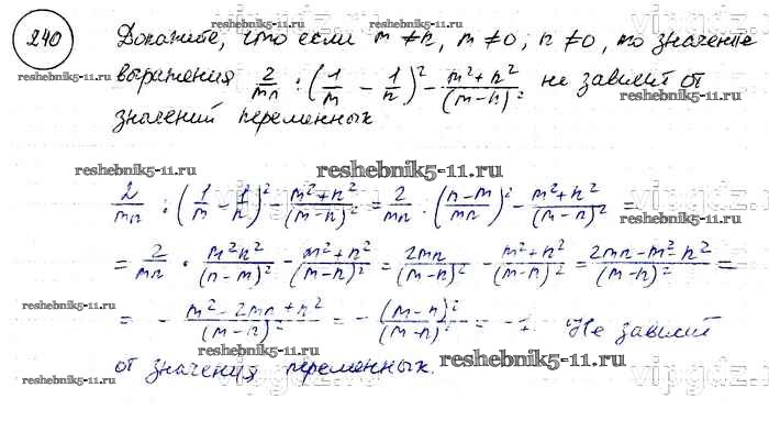 Готовая домашняя работа с ответами по Алгебре за 8 класс Макарычев, Миндюк, Нешков, Суворова Учебник Просвещение 2016 ФГОС - Упражнения 240