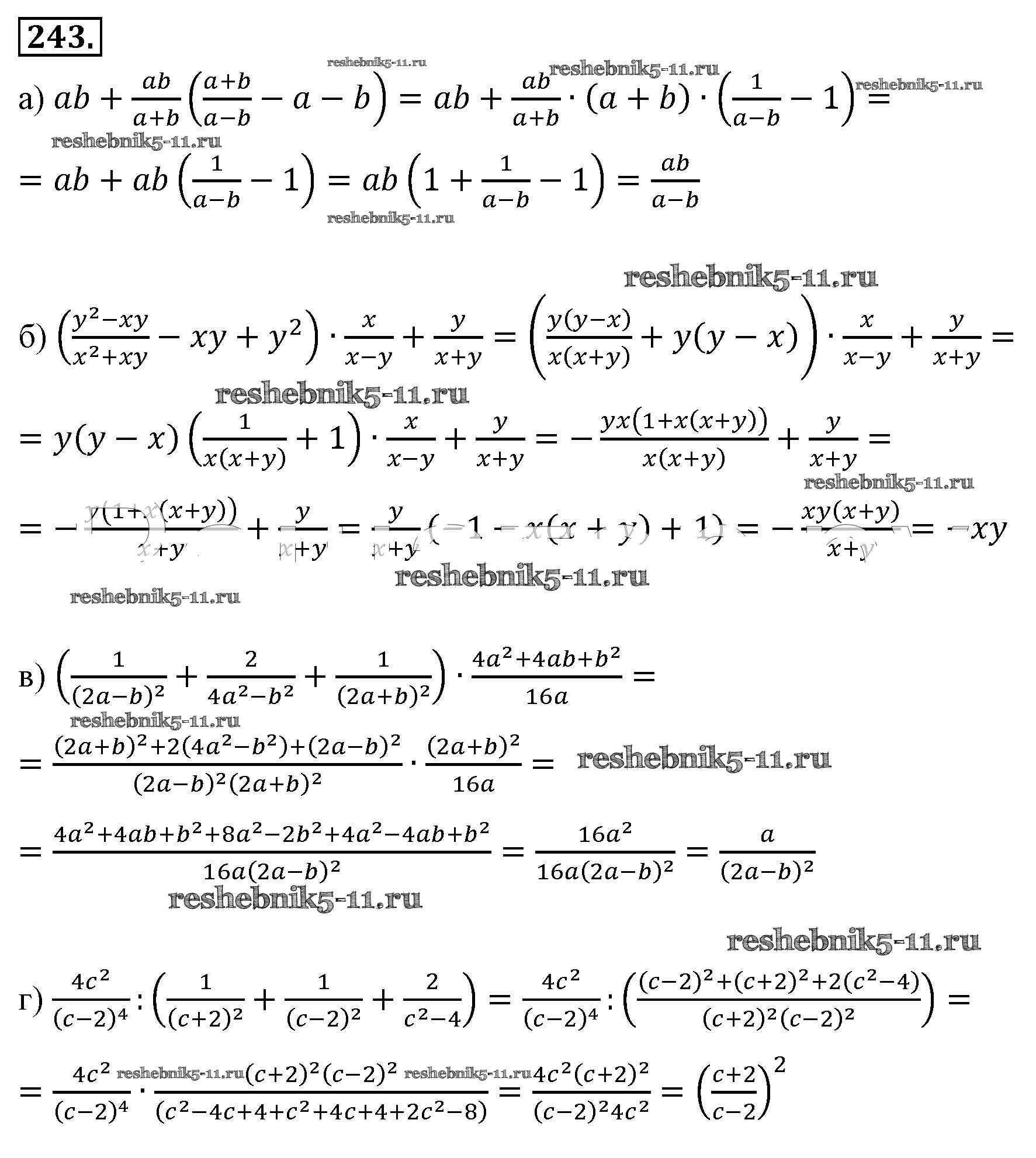 Готовая домашняя работа с ответами по Алгебре за 8 класс Макарычев, Миндюк, Нешков, Суворова Учебник Просвещение 2016 ФГОС - Упражнения 243