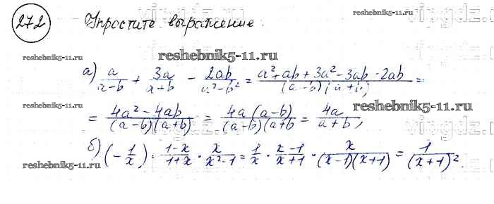 Готовая домашняя работа с ответами по Алгебре за 8 класс Макарычев, Миндюк, Нешков, Суворова Учебник Просвещение 2016 ФГОС - Упражнения 272