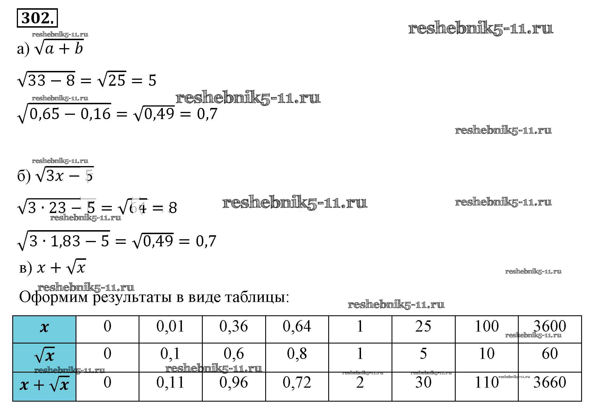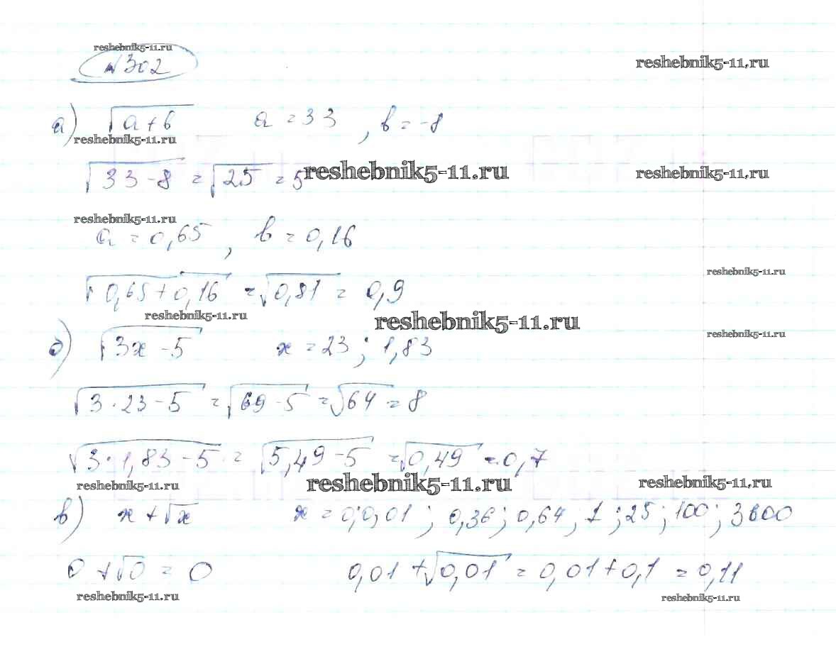 Готовая домашняя работа с ответами по Алгебре за 8 класс Макарычев, Миндюк, Нешков, Суворова Учебник Просвещение 2016 ФГОС - Упражнения 302