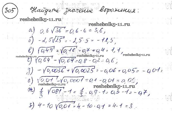 Готовая домашняя работа с ответами по Алгебре за 8 класс Макарычев, Миндюк, Нешков, Суворова Учебник Просвещение 2016 ФГОС - Упражнения 305