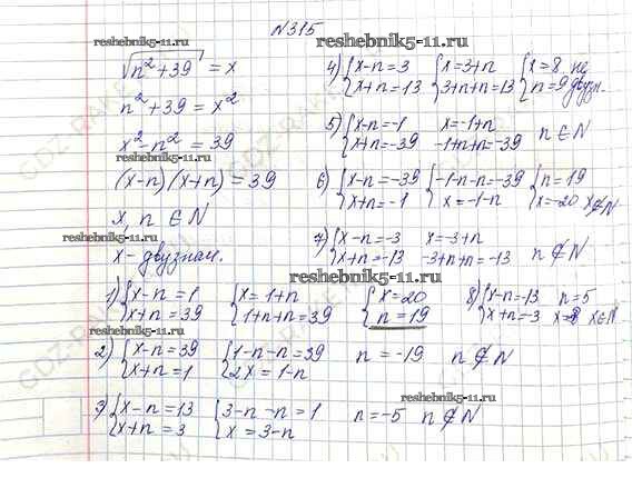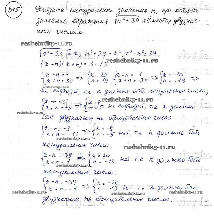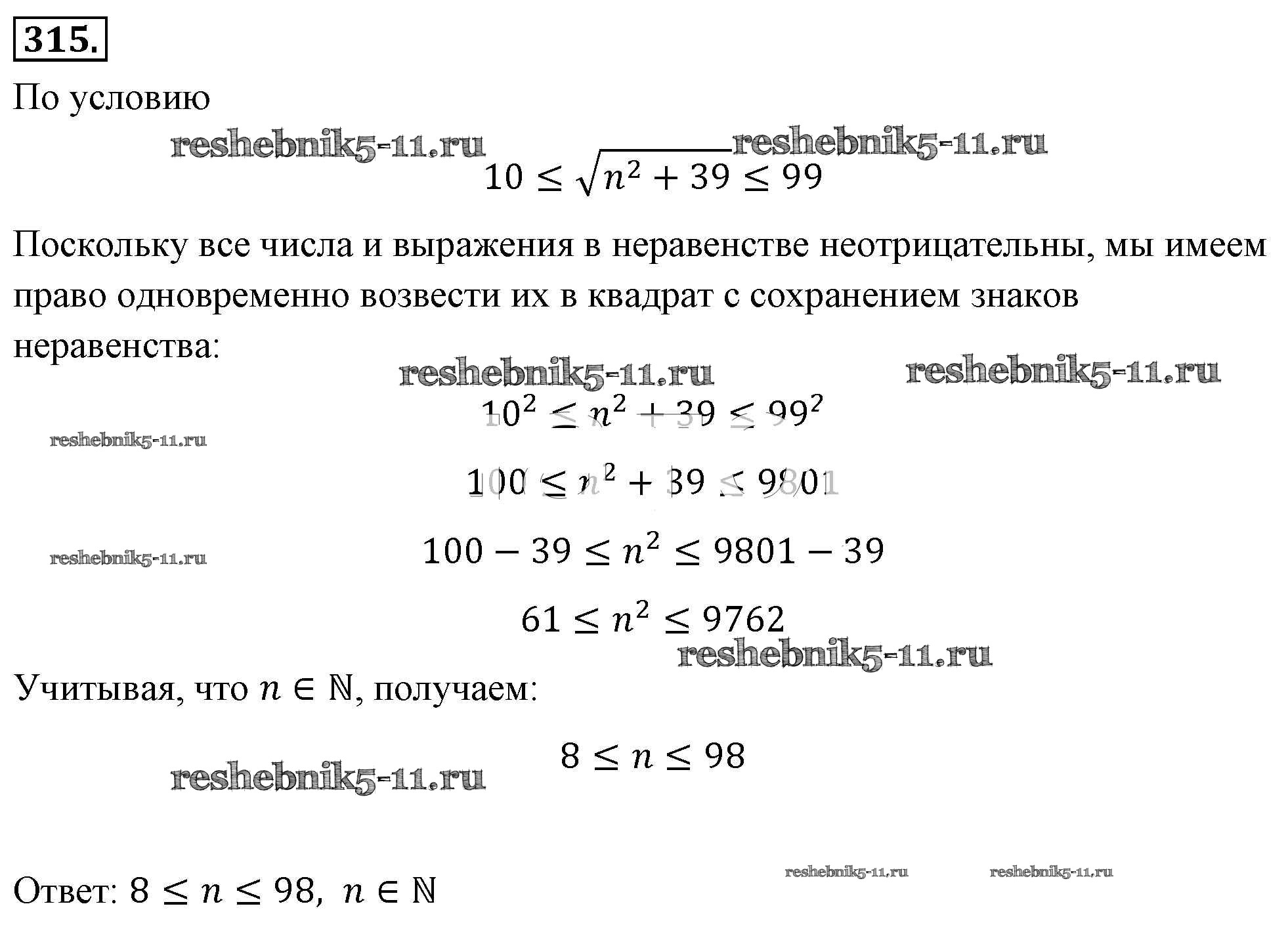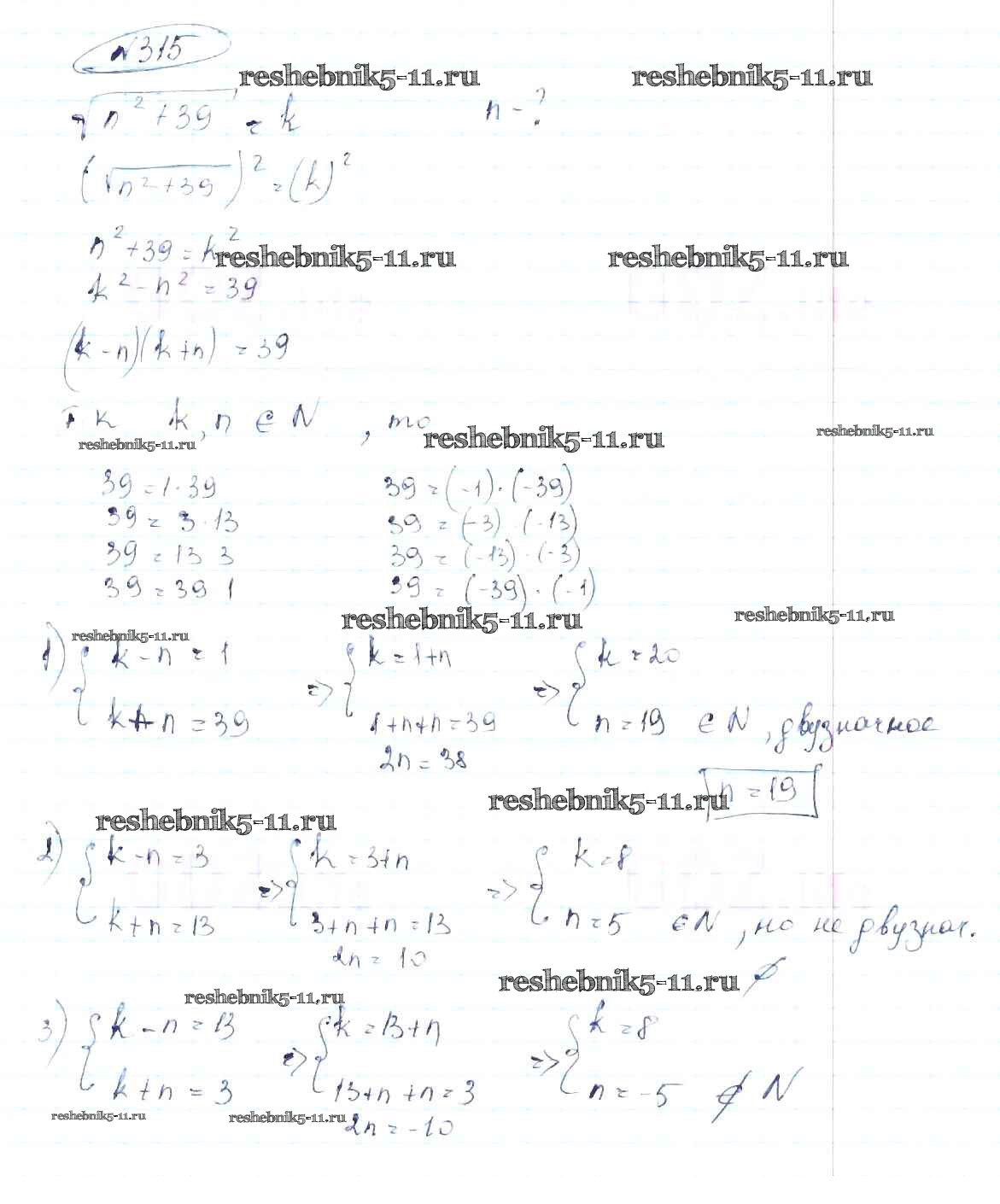 Готовая домашняя работа с ответами по Алгебре за 8 класс Макарычев, Миндюк, Нешков, Суворова Учебник Просвещение 2016 ФГОС - Упражнения 315