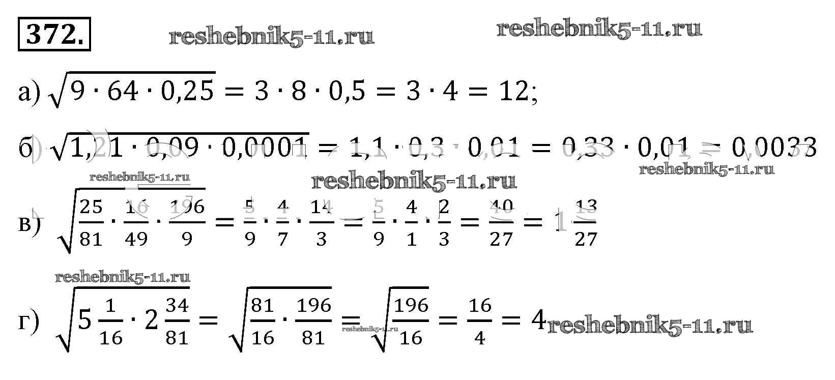 Готовая домашняя работа с ответами по Алгебре за 8 класс Макарычев, Миндюк, Нешков, Суворова Учебник Просвещение 2016 ФГОС - Упражнения 372