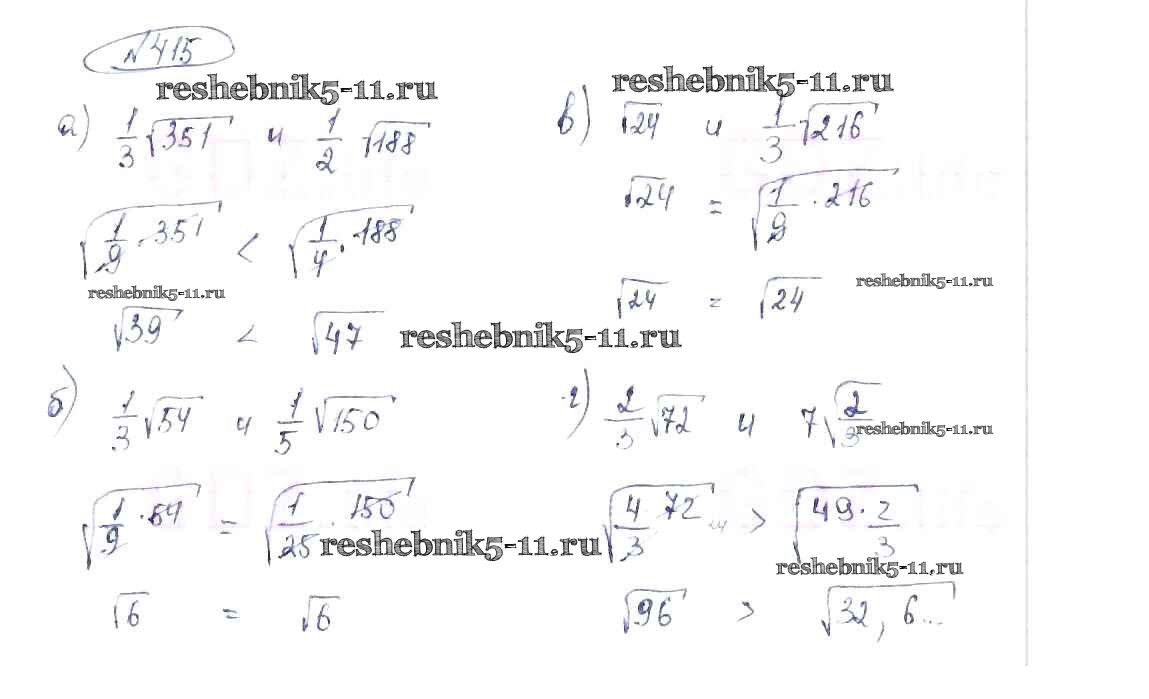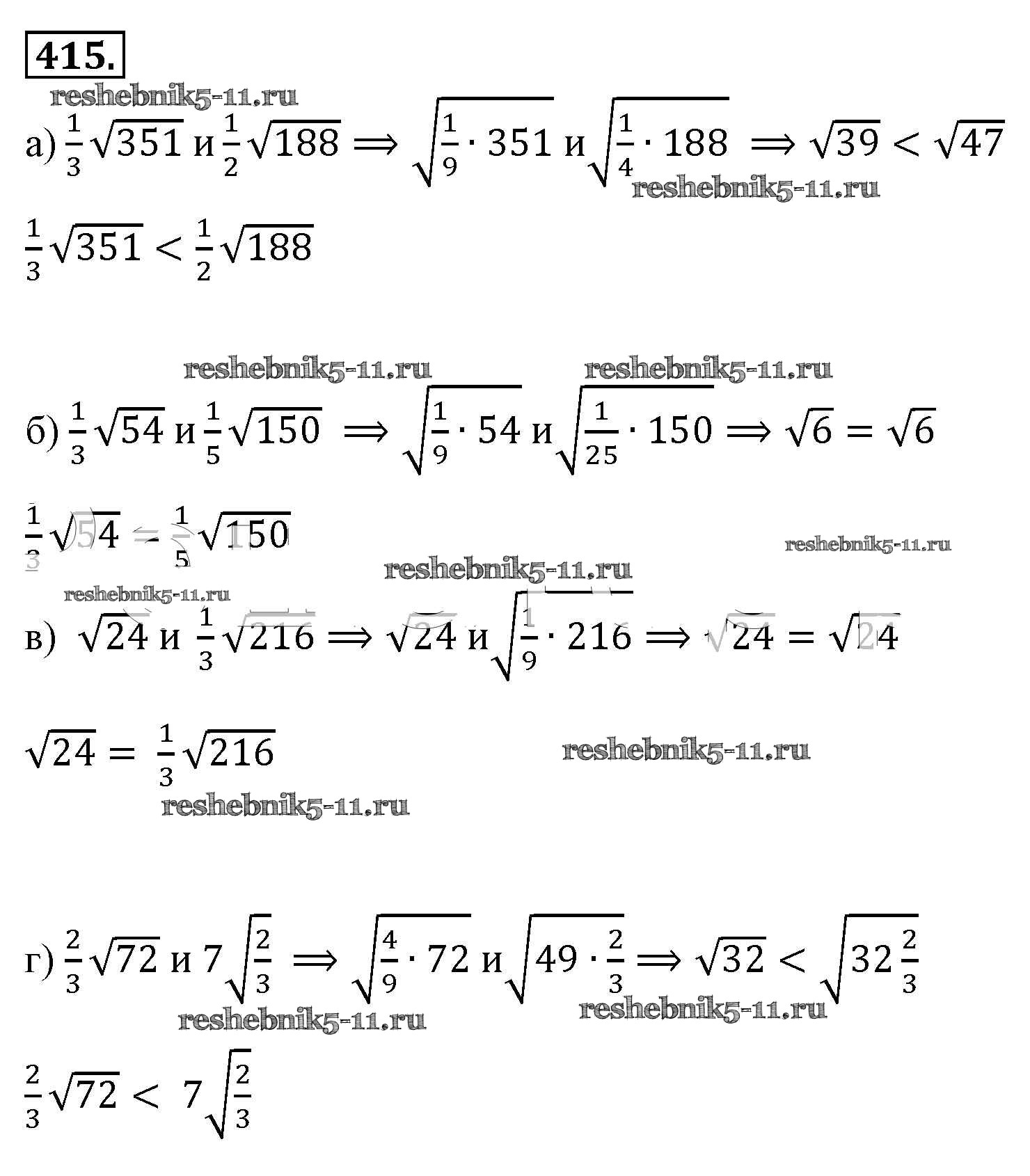 Готовая домашняя работа с ответами по Алгебре за 8 класс Макарычев, Миндюк, Нешков, Суворова Учебник Просвещение 2016 ФГОС - Упражнения 415
